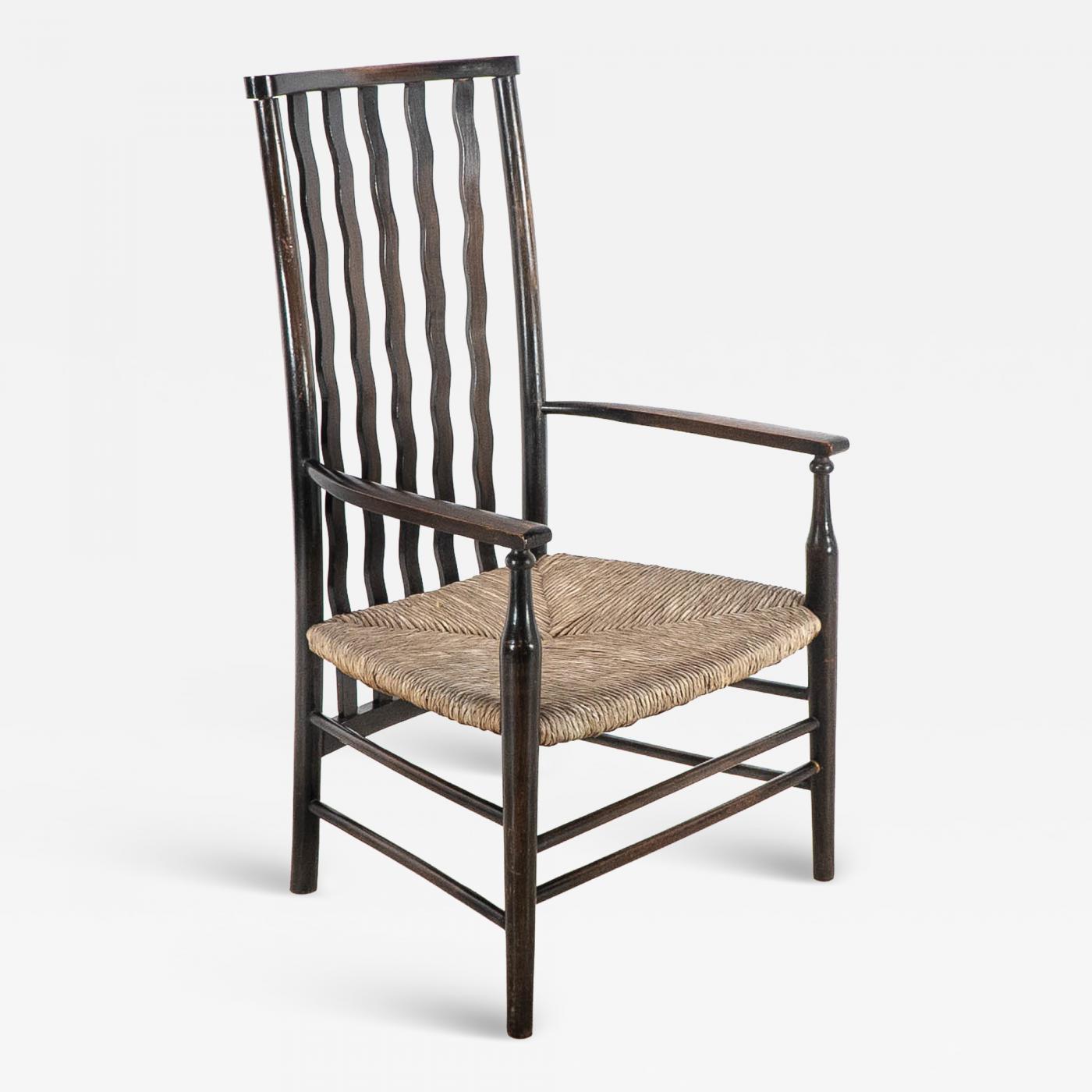 - Liberty & Co. an English Aesthetic Movement Ebonised Armchair with Seagrass Seat