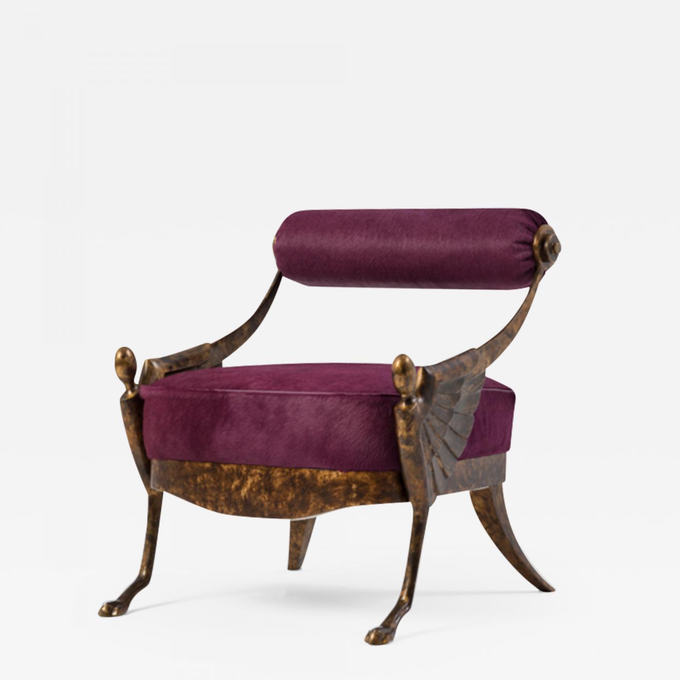 Precious historical product of the Mantellassi archive. Structure in cast bronze and hand chiselled, this important piece represents a cult of our collection. Due to its extraordinary versatility, it fits into any environment. Fantastic in every stylistic representation and of great tendency. Covering as seen: Cover in Cavallino col. Tobiano Wooden base cod.910 gold leaf etched Structure in bronze finish cod.1050 etched brass