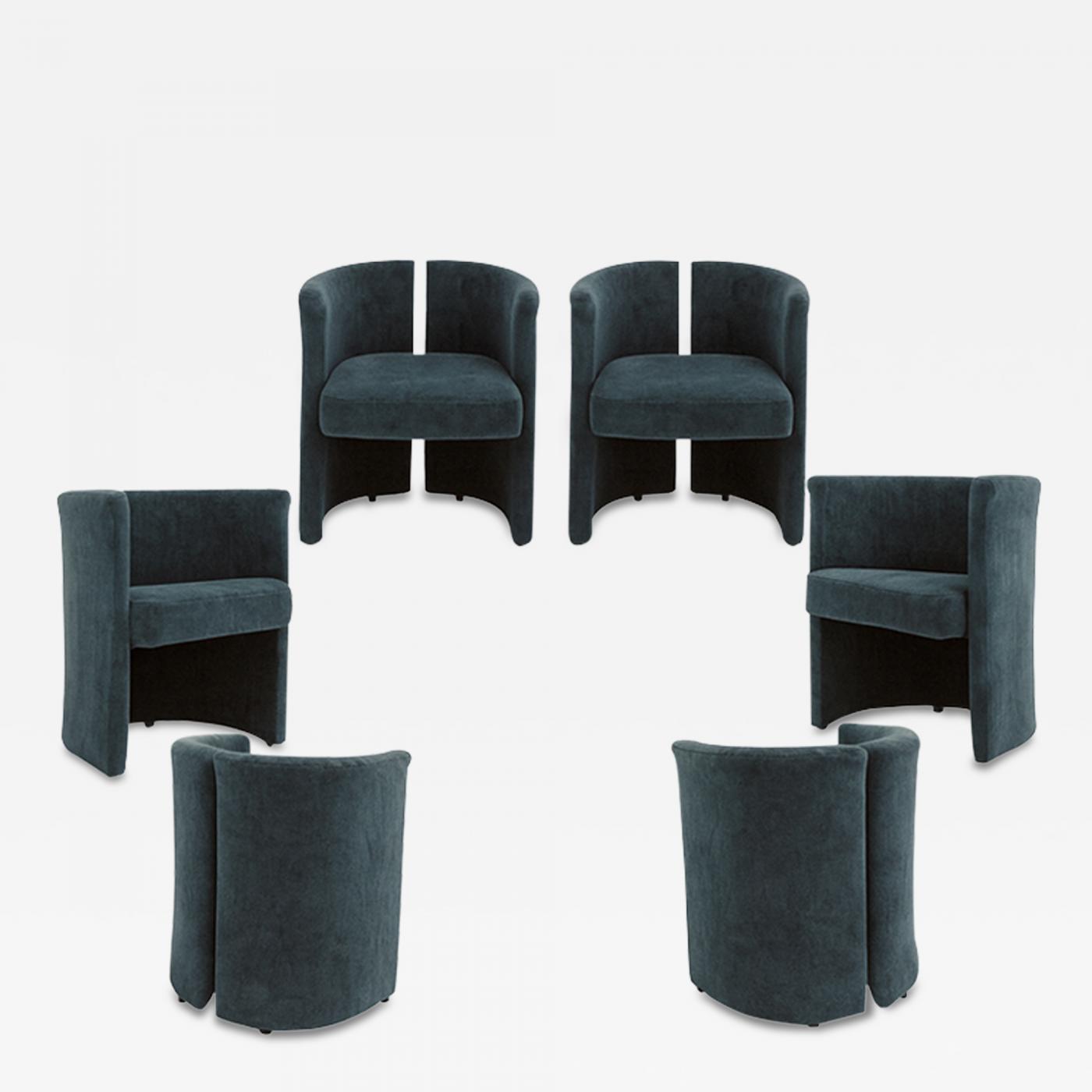 The chairs are entirely upholstered in blue cotton velvet, a refined and timeless fabric that enhances their organic silhouette while ensuring comfort and elegance. Their bold yet balanced form reflects the spirit of Italian mid-century and 1970s design, where craftsmanship and innovation converge.