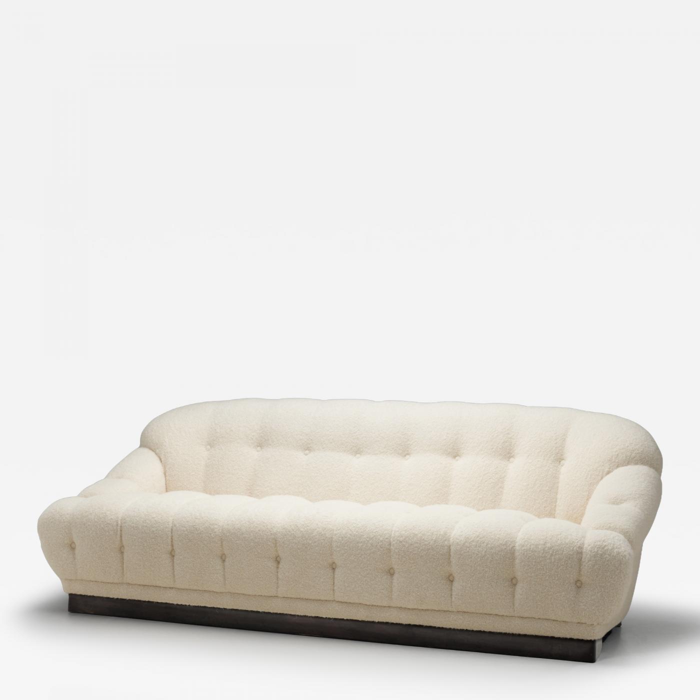 In good vintage condition. Wear consistent with age and use. Item may have some marks, scratches, and discolouration. The sofa has been recently reupholstered in a premium fabric. Each of our items can be reupholstered by our in-house atelier in a fabric of choice. Please reach out for more information.