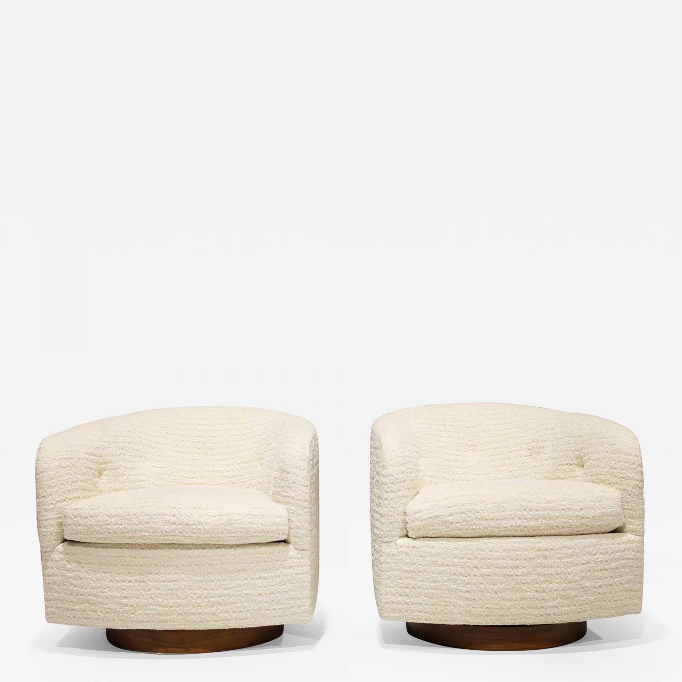 Milo Baughman Tilt Swivel Lounge Chairs in Kelly Wearstler Off-White Upholstery