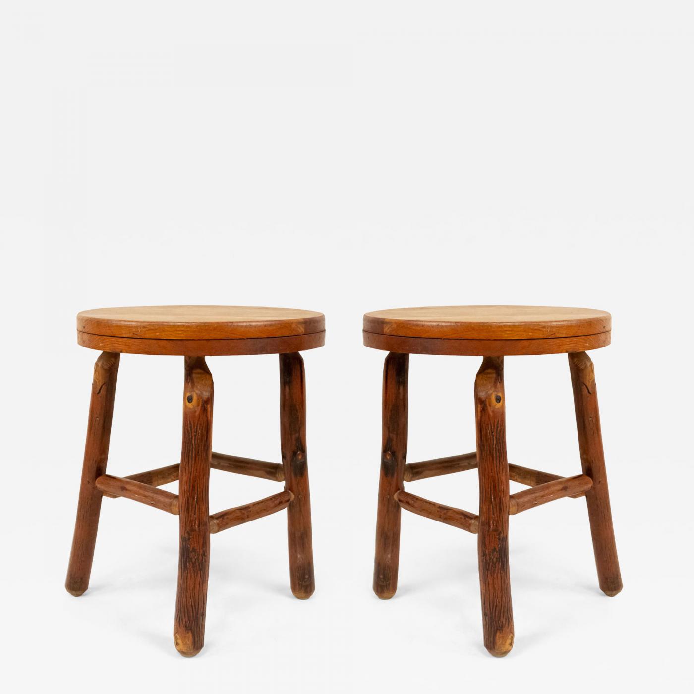 Creator: Old Hickory // Depth: 14.5" // 4 American Rustic Old Hickory (1930s stools) with round oak tops and a box form stretcher on leg (probably INDIANA WILLOW CO.) (PRICED EACH)