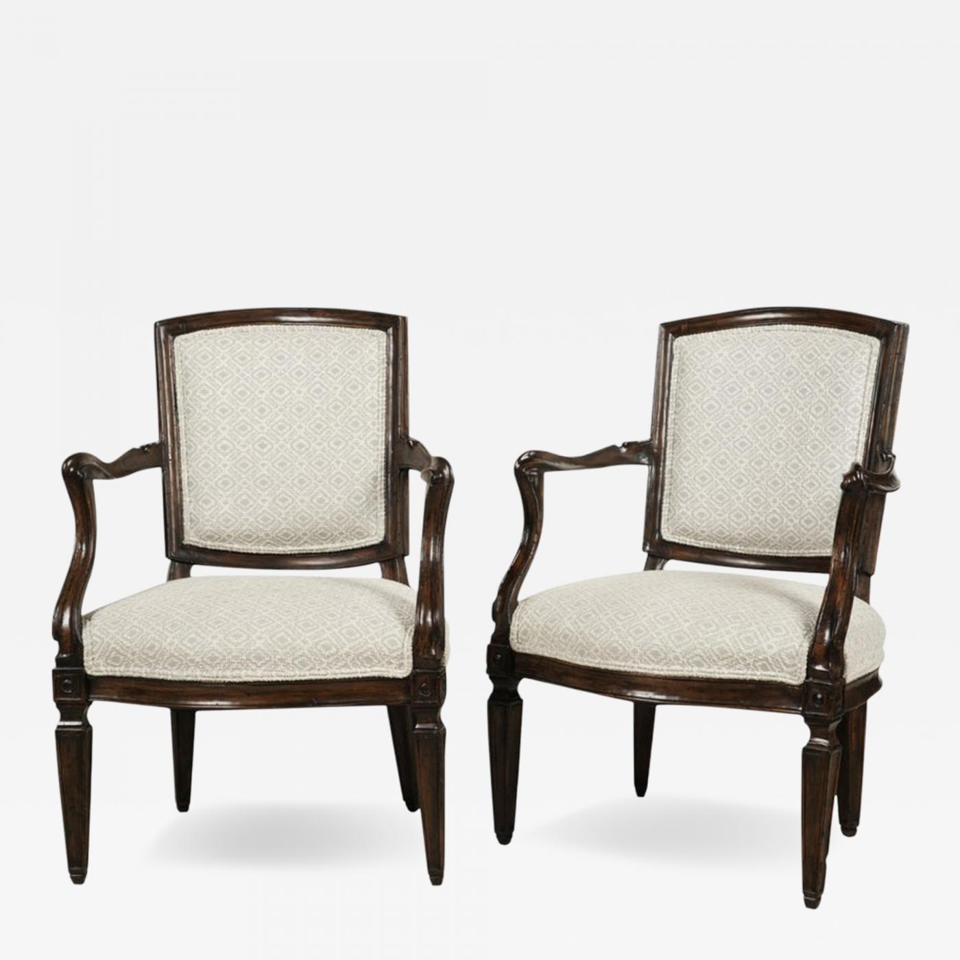 Pair of 18th C Style French Neoclassical Mahogany Arm Chairs