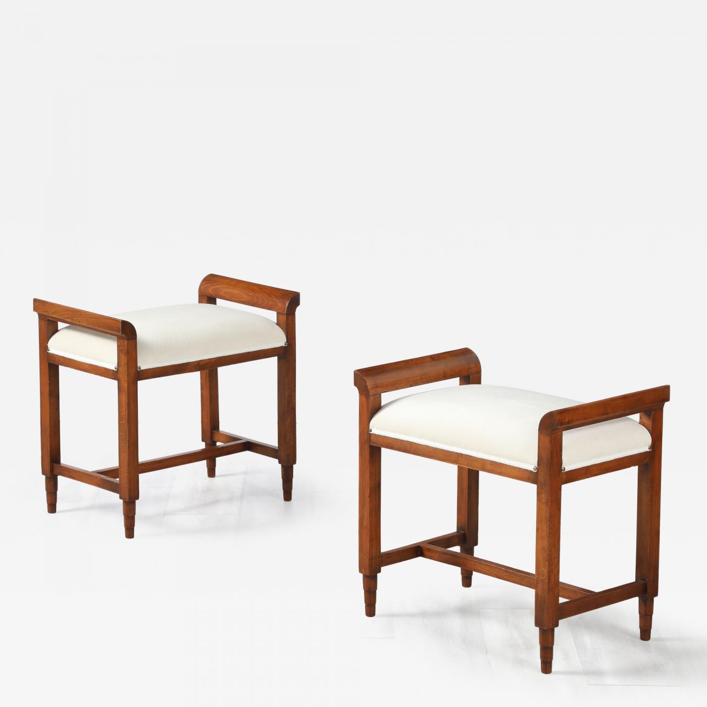 Pair of Italian Carved Walnut Art Deco Stools, circa 1940