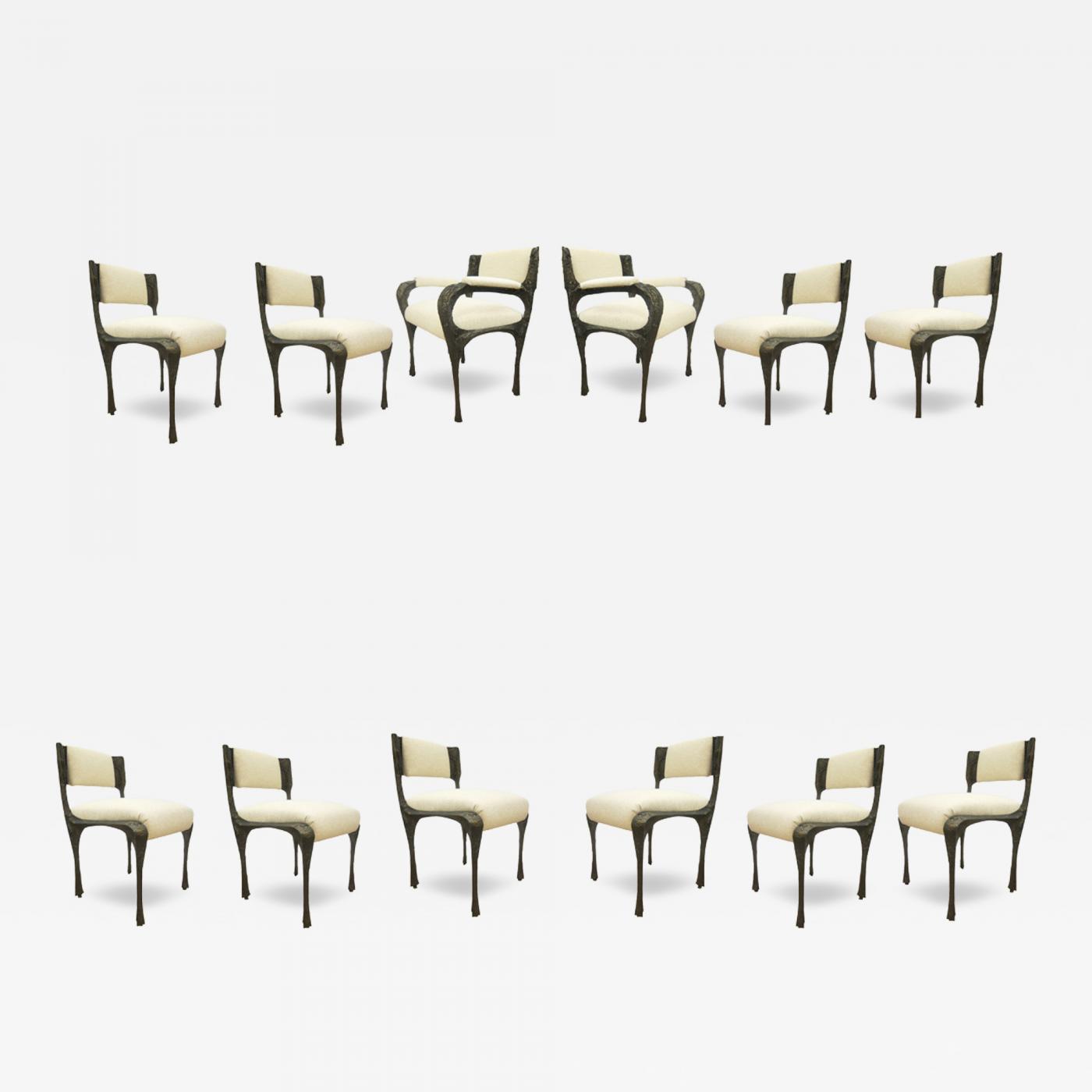 Paul Evans Set of Twelve Brutalist Sculpted Bronze Dining Chairs, USA 1970
