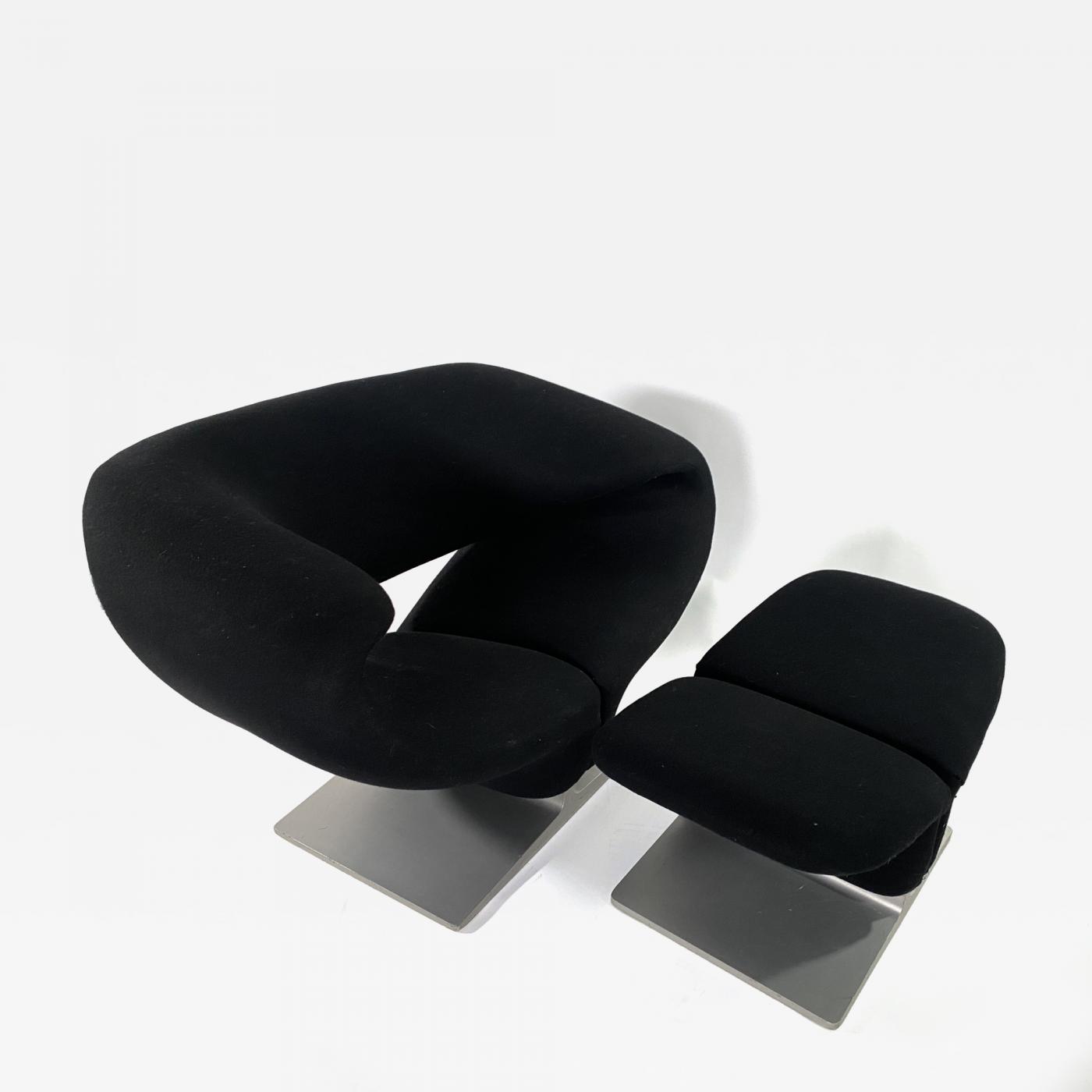 Set of Pierre Paulin French Mid-Century Black Ribbon Armchairs and Ottoman