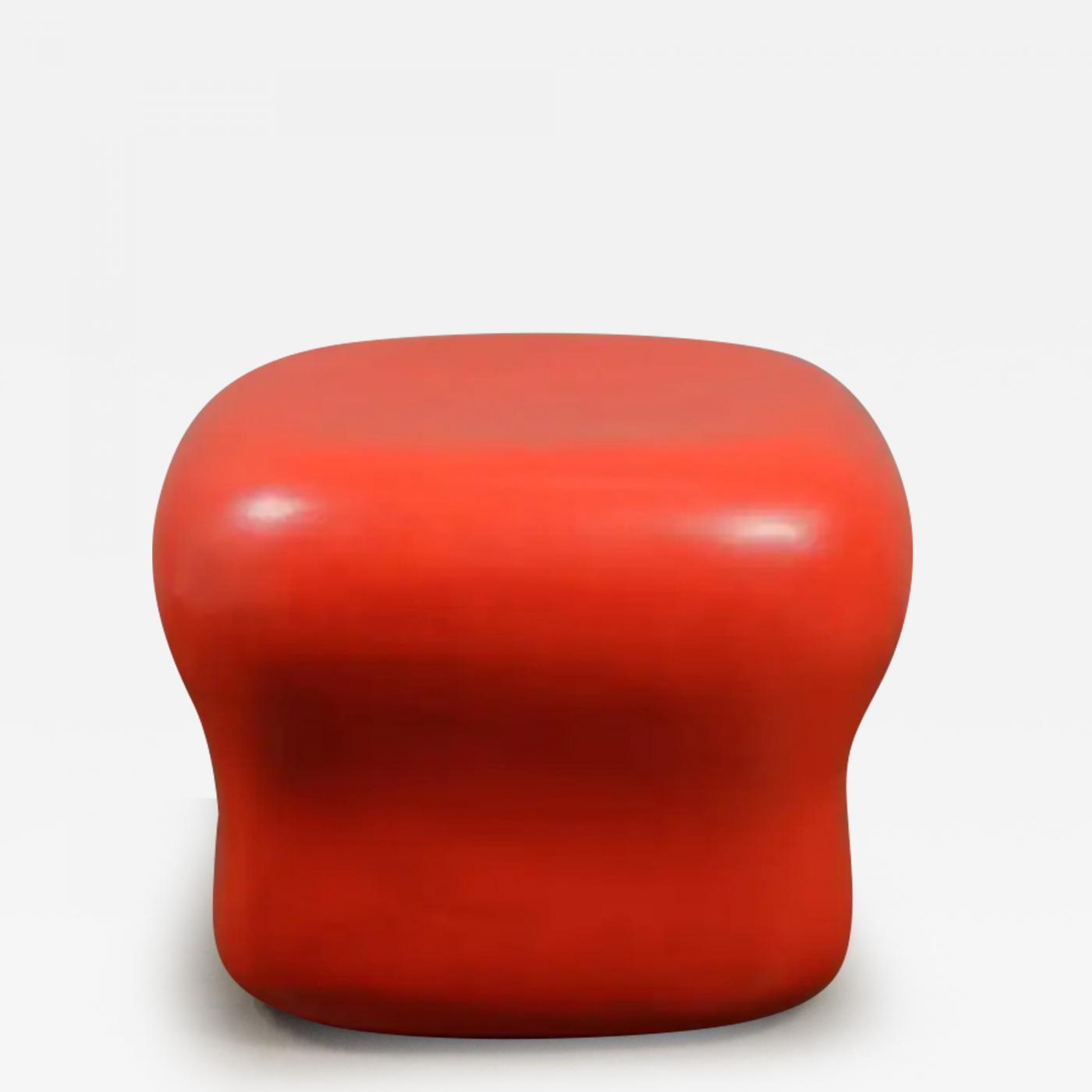 Contemporary Red Lacquer Cushion Drumstool by Robert Kuo, Limited Edition