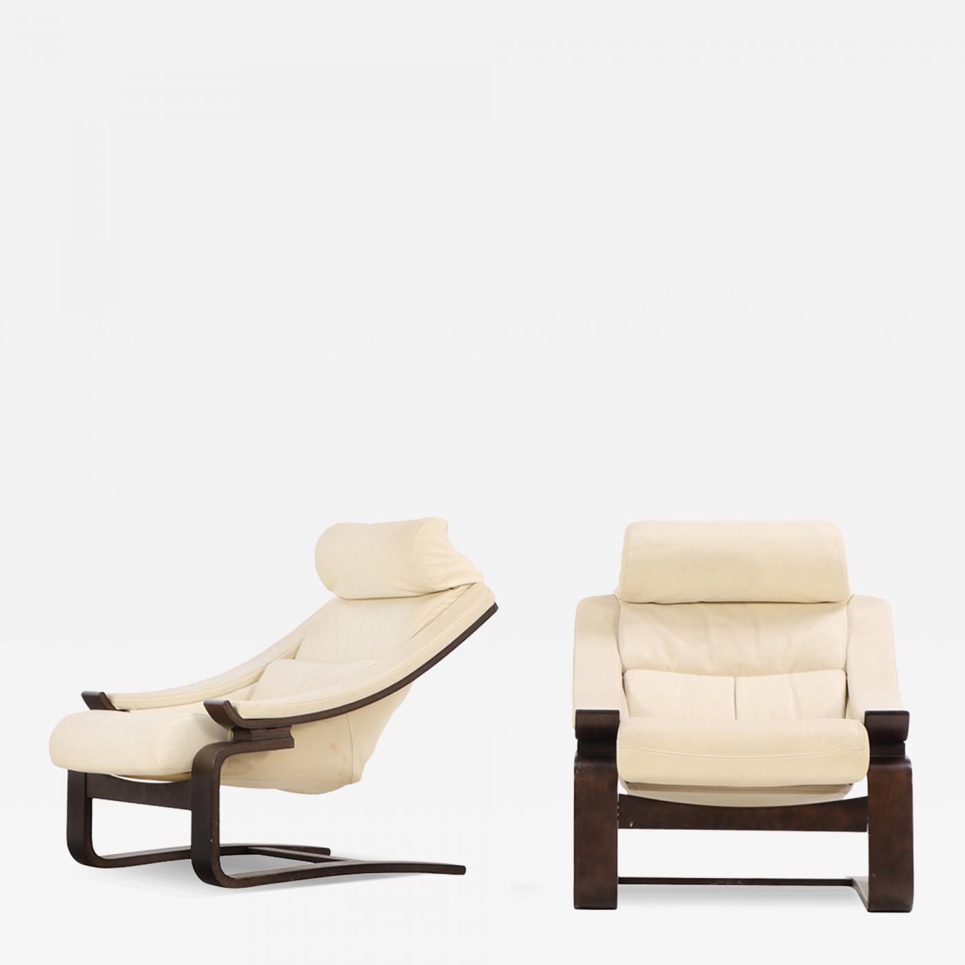 A Pair of French Leather Cantilevered Lounge Chairs, C. 1970, Roche Bobois.