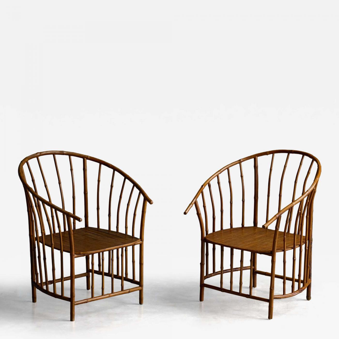 Originating from France in the 1970s, these accent chairs are crafted entirely from bamboo, with both the airy spindle frame and the seat showcasing the material’s natural warmth and texture. Their light, open design brings an organic elegance that integrates seamlessly into rustic and eclectic interiors. Two available, priced per piece.