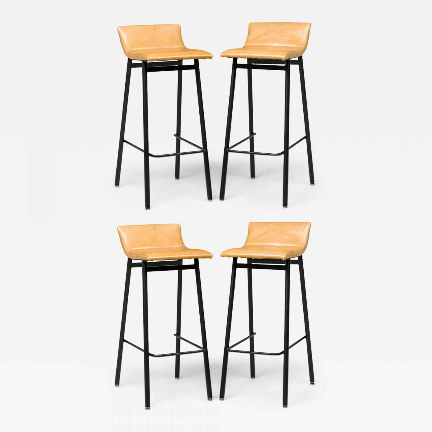 Set of 4 Vista Black Enamel Barstools with Mustard Upholstered Scoop Seats