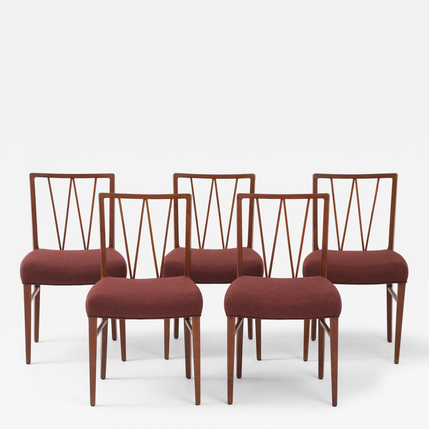 Set of 5 Ole Wanscher Dining Chairs Upholstered in Loro Piana