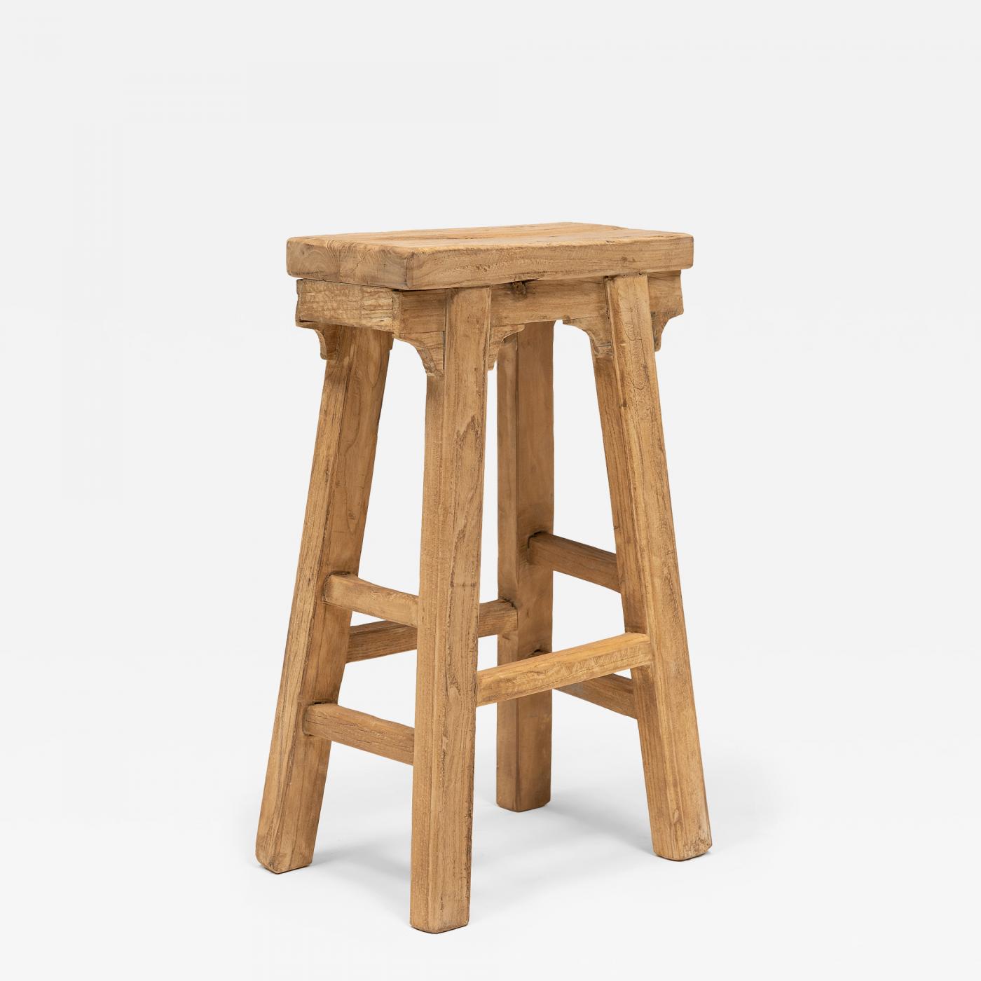 Depth: 11" // This provincial stool is artisan-crafted in the style of traditional Chinese courtyard stools typically used throughout a Qing dynasty home as versatile everyday seating. Made of reclaimed elmwood, the tapered stool features a narrow, rectangular seat supported by four splayed legs linked with straight side stretchers and floor stretchers that double as footrests. Left unfinished, the original grain of the stool offers fantastic character and rustic, wabi-sabi texture. This stool stands tall, making it a great seating option for a bar or kitchen counter.