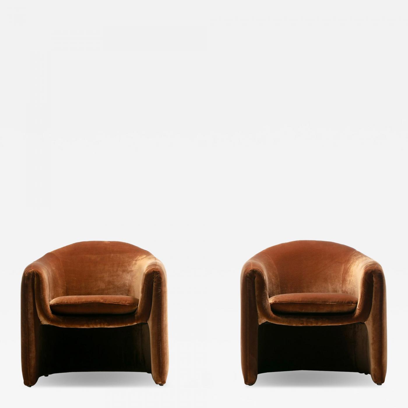 Documentation: Signed Origin: United States Period: 1980-1999 Materials: Upholstery, Velvet. Condition: Good. Reupholstered. Wear consistent with age and use. These Vladimir Kagan Lounge Chairs by Preview were freshly upholstered in high grade caramel velvet. Creation Date: 1980 Number of Pieces: 2-3 Styles / Movements: Modern Incollect Reference #: 826025 -