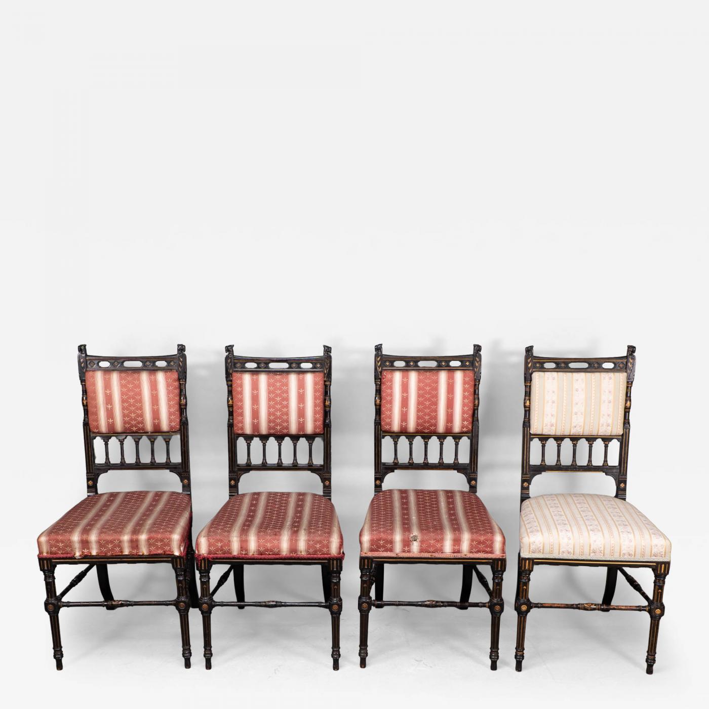 R. Whytock & Co. Set of 4 Aesthetic Movement Walnut & Gilt Side Chairs