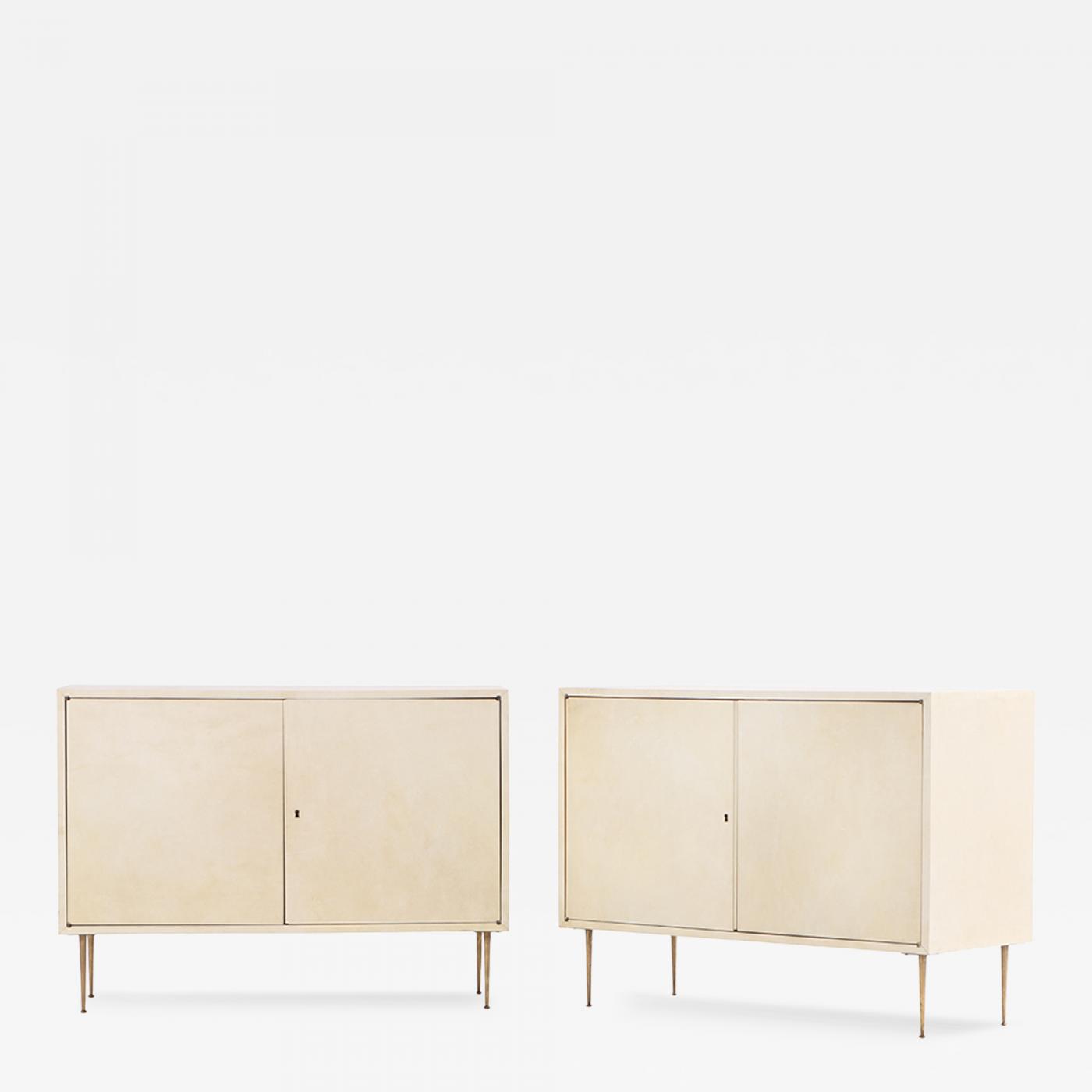 - Pair of Parchment Covered Cabinets, in the manner of Jean-Michel Frank, C. 1950.