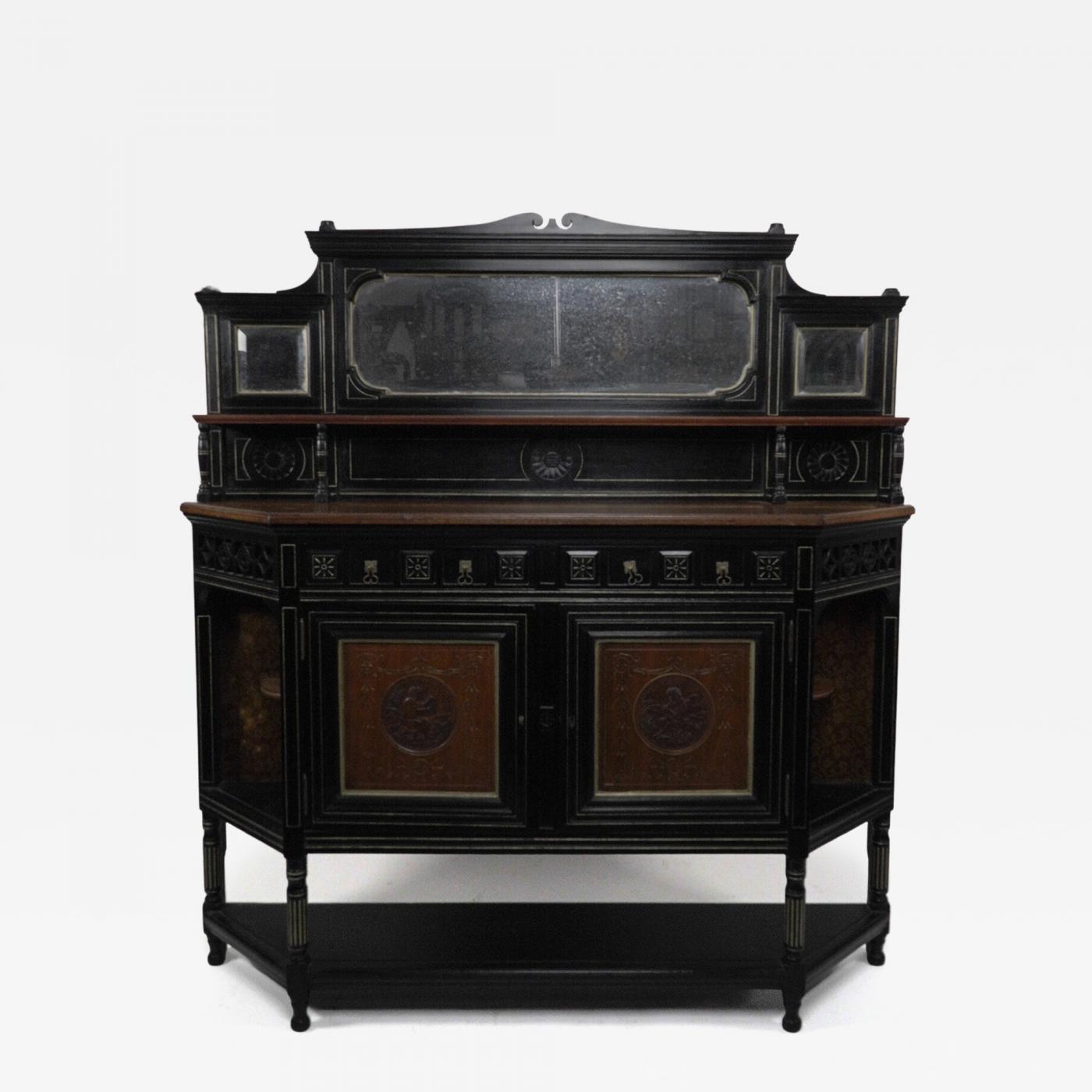 - Jas Shoolbred, attributed. A Pair of Anglo-Japanese Ebonized Open Armchairs