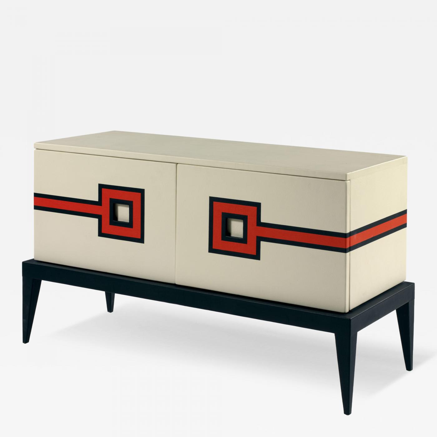 Tow Doors Buffet in Leather Marquetry White Black Orange