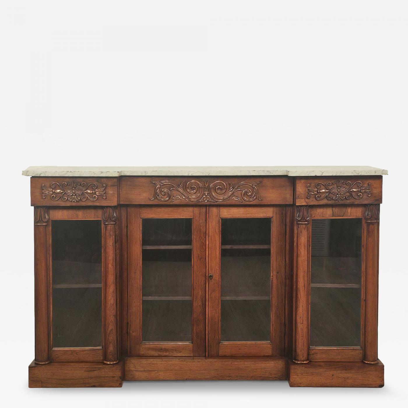 English Late Regency Period Rosewood Breakfront Cabinet, circa 1830