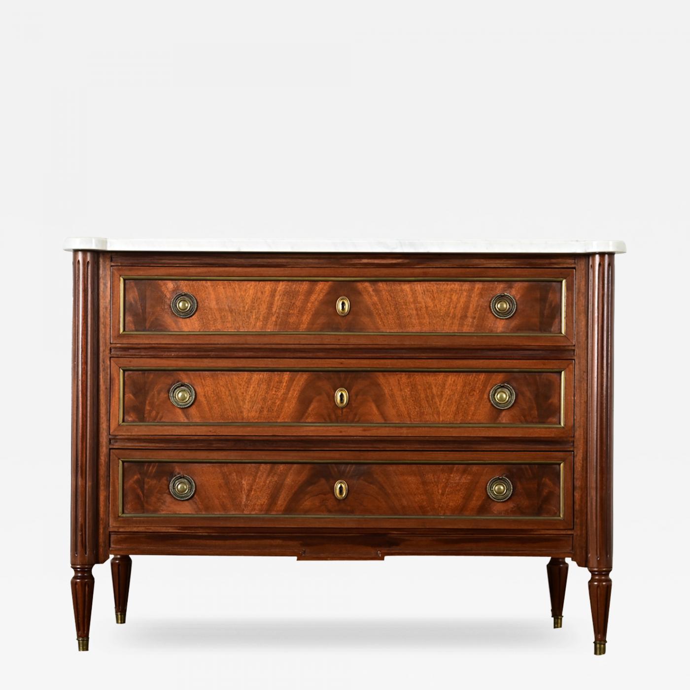 Origin: France Period: 1900-1919 Materials: Brass, Carved, Mahogany, Marble, Beech, Bookmatched, Fluted. Condition: Good. Creation Date: 1900's Styles / Movements: Traditional, Louis XVI Dealer Reference #: 4452-25 Incollect Reference #: 803922 -