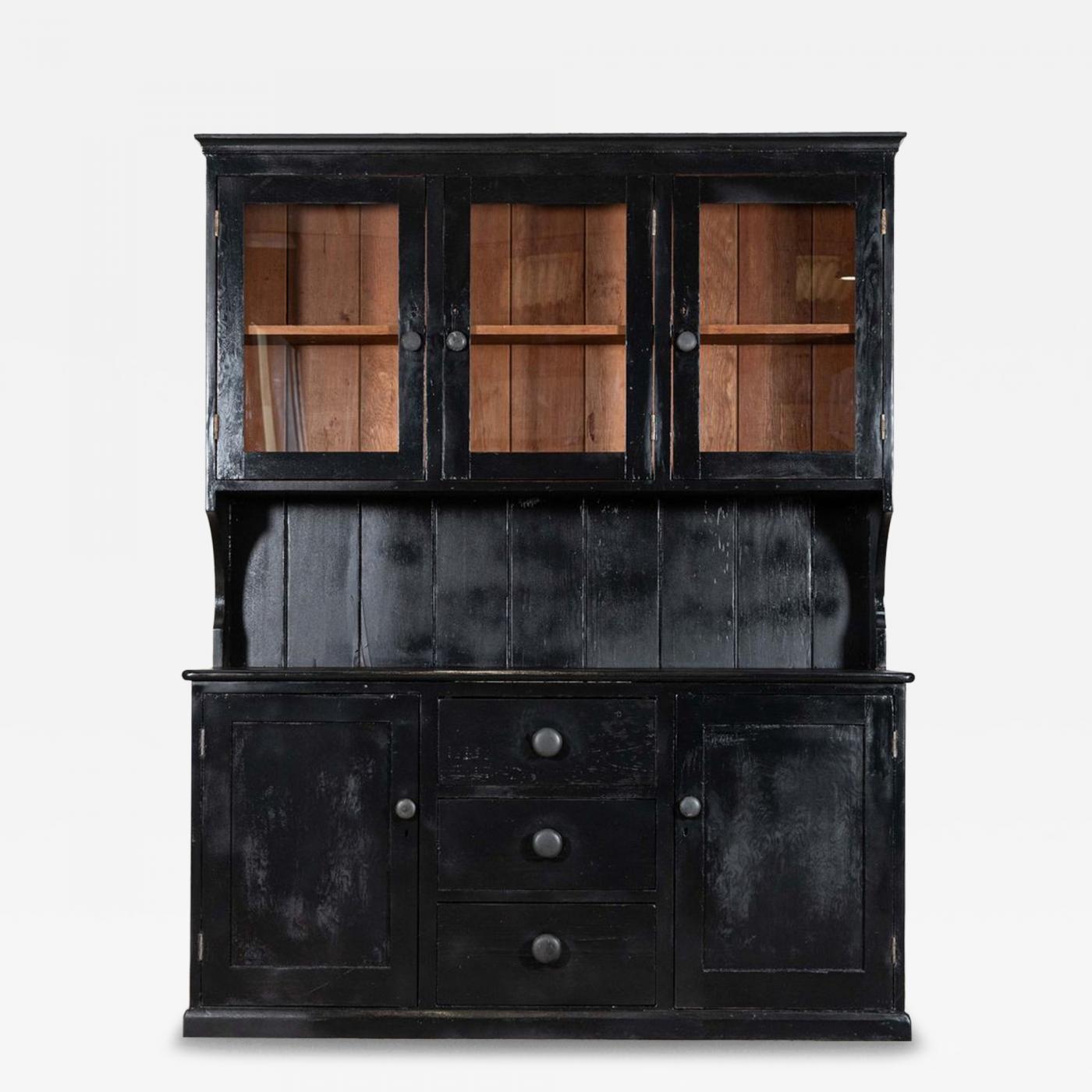 Large Ebonised 19thC English Pine Butlers Pantry Cabinet