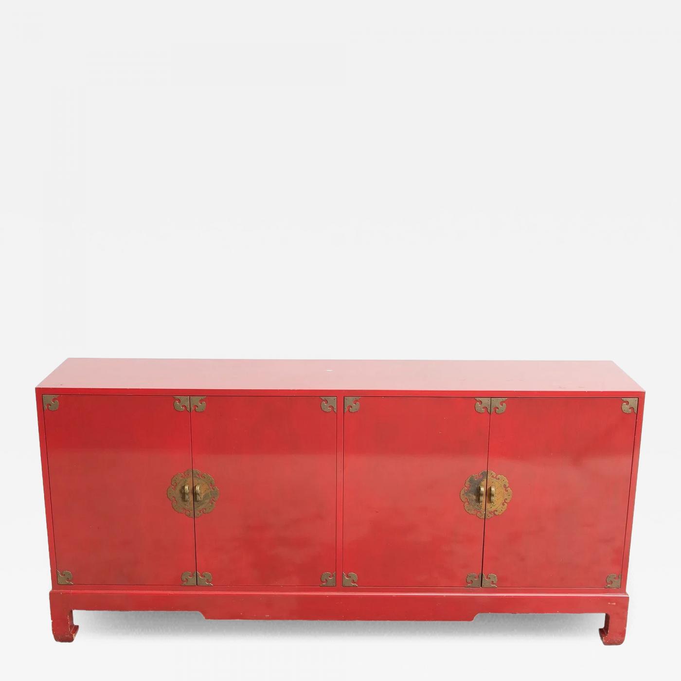 Mid-20th Century Modern Chinoiserie Red Lacquered Four-Door Buffet / Server