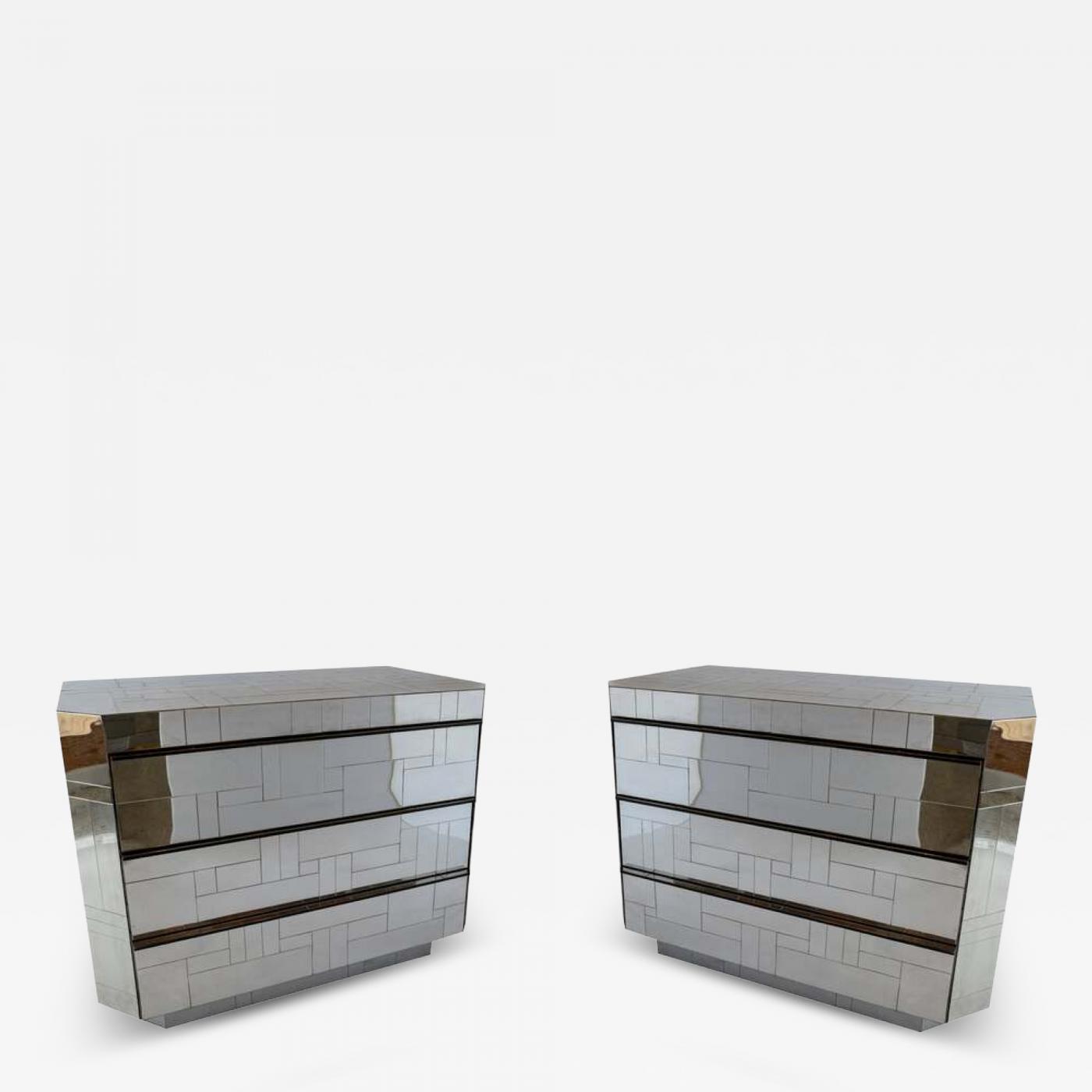 Pair of Paul Evans Modern Polished Chrome "Cityscape" 3-Drawer Chests