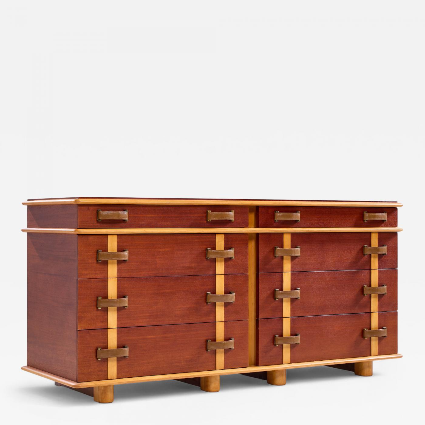 Modern Hill Furniture offers this Paul Frankl for Johnson Furniture Mid Century Leather, Birch and Maple Station Wagon Dresser from our extensive inventory of over 2,100 pieces of mid-century modern furniture.
