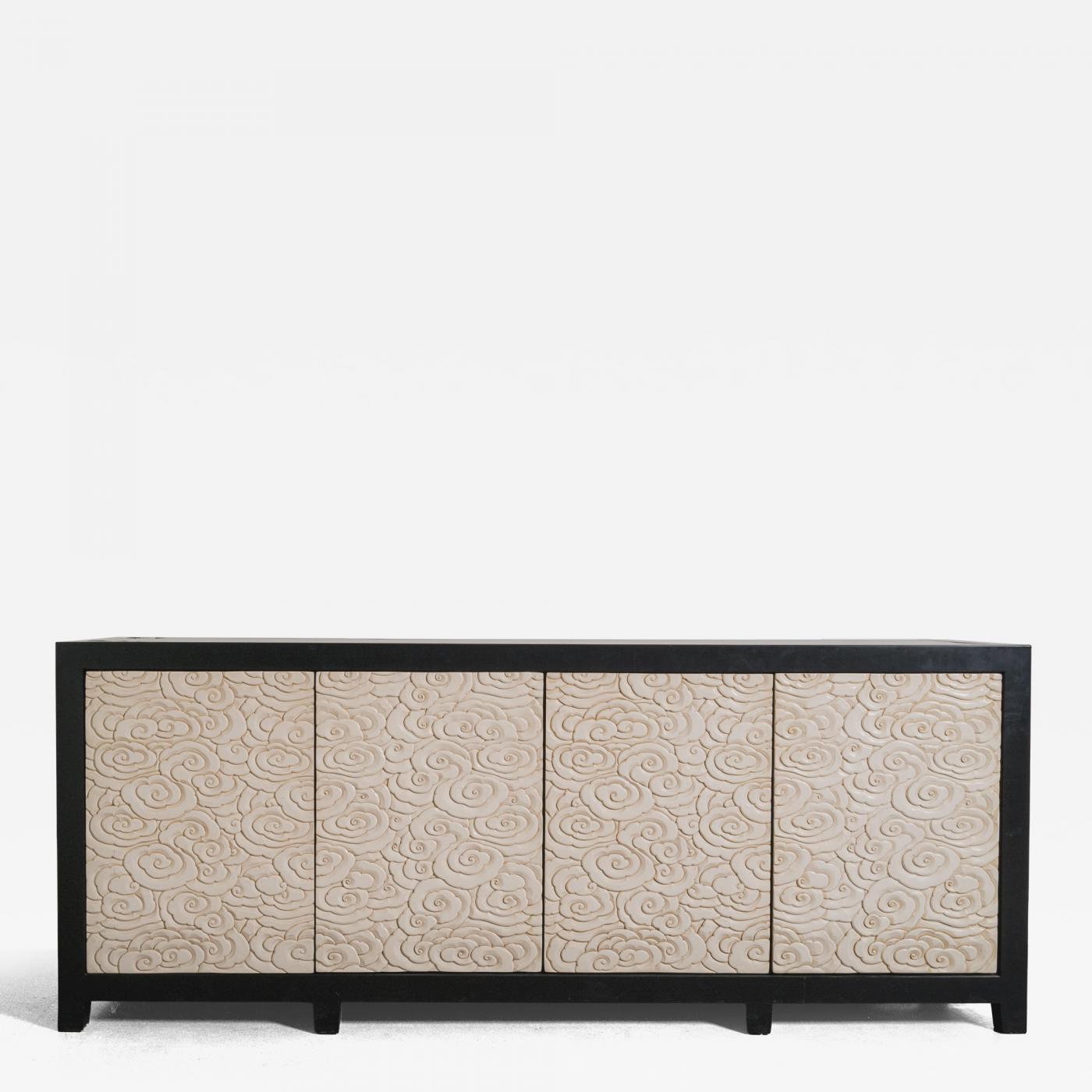 Contemporary Hand Carved Cream Lacquer Cloud Design Buffet by Robert Kuo