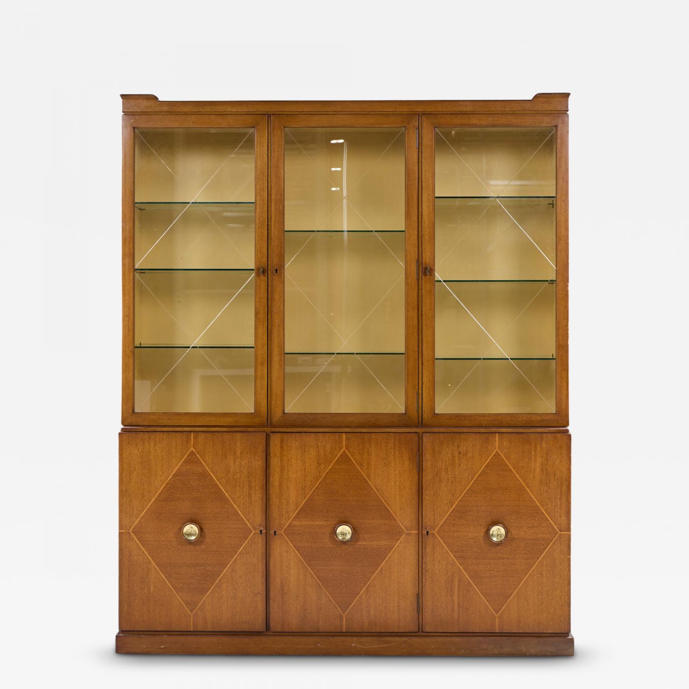 Tommi Parzinger for Charak Modern Mid Century Mahogany Breakfront China Cabinet
