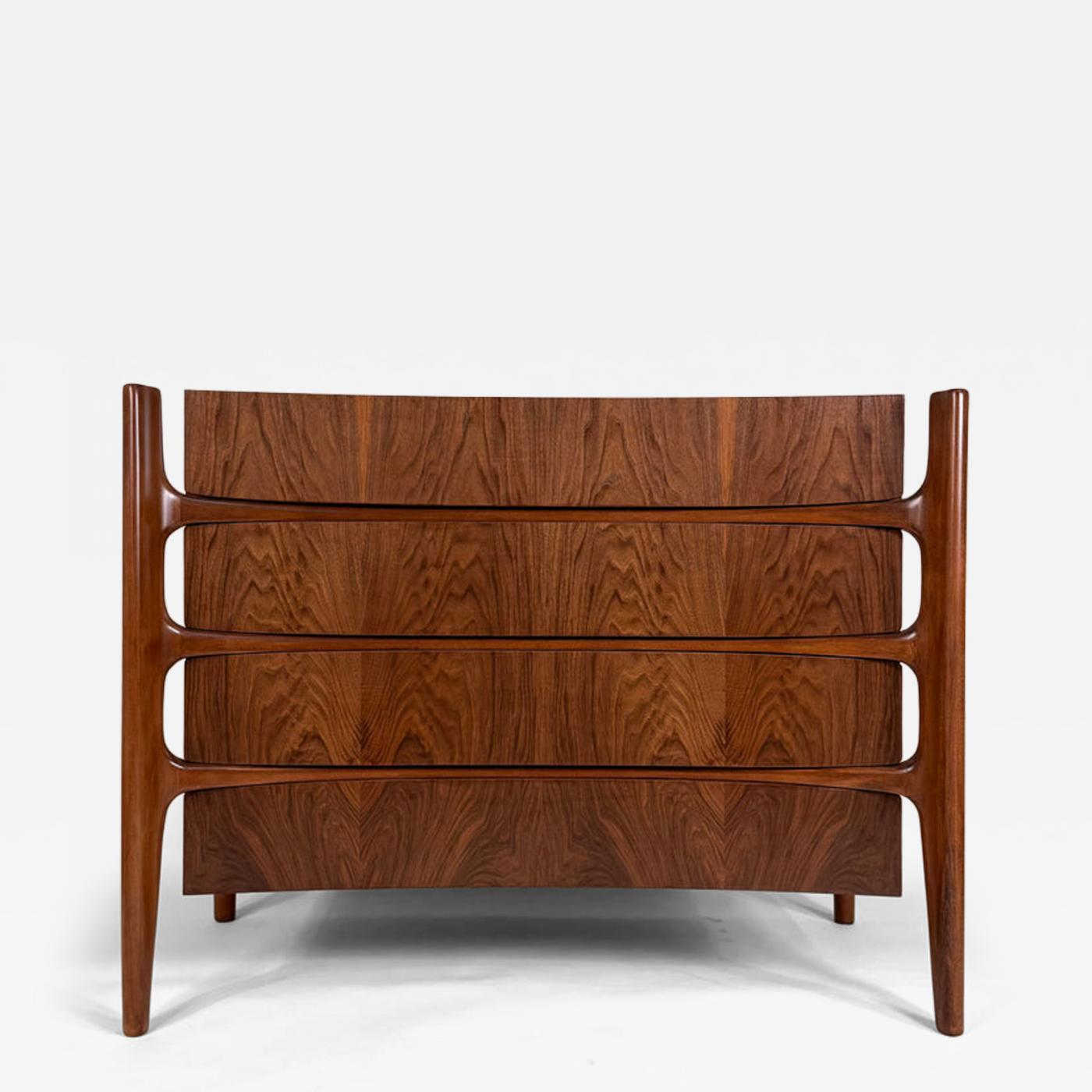 William Hinn Sculpted Walnut 4-Drawer Dresser – Made in Sweden, c. 1950s