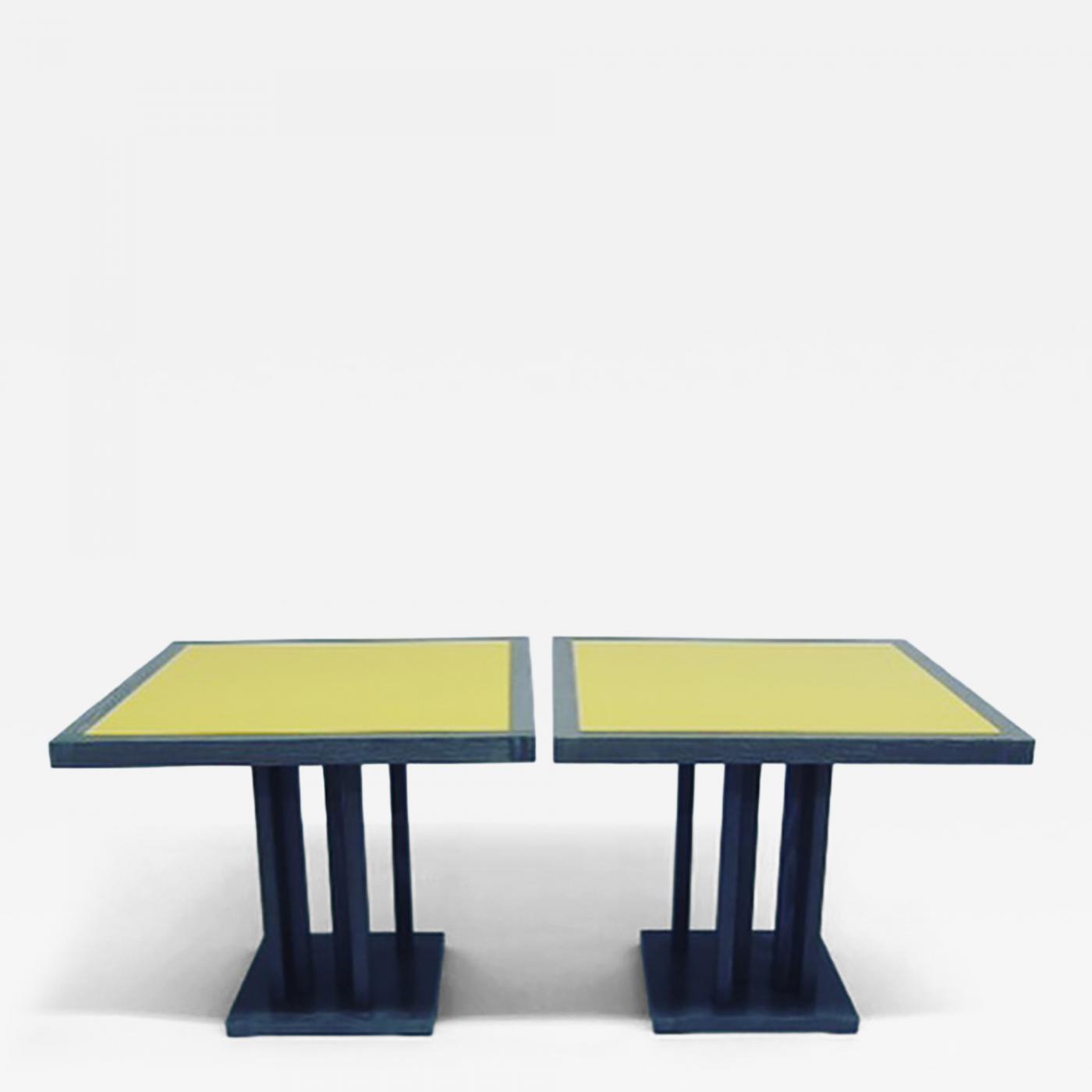 - A matching pair of custom cerused oak and yellow lacquered dining tables