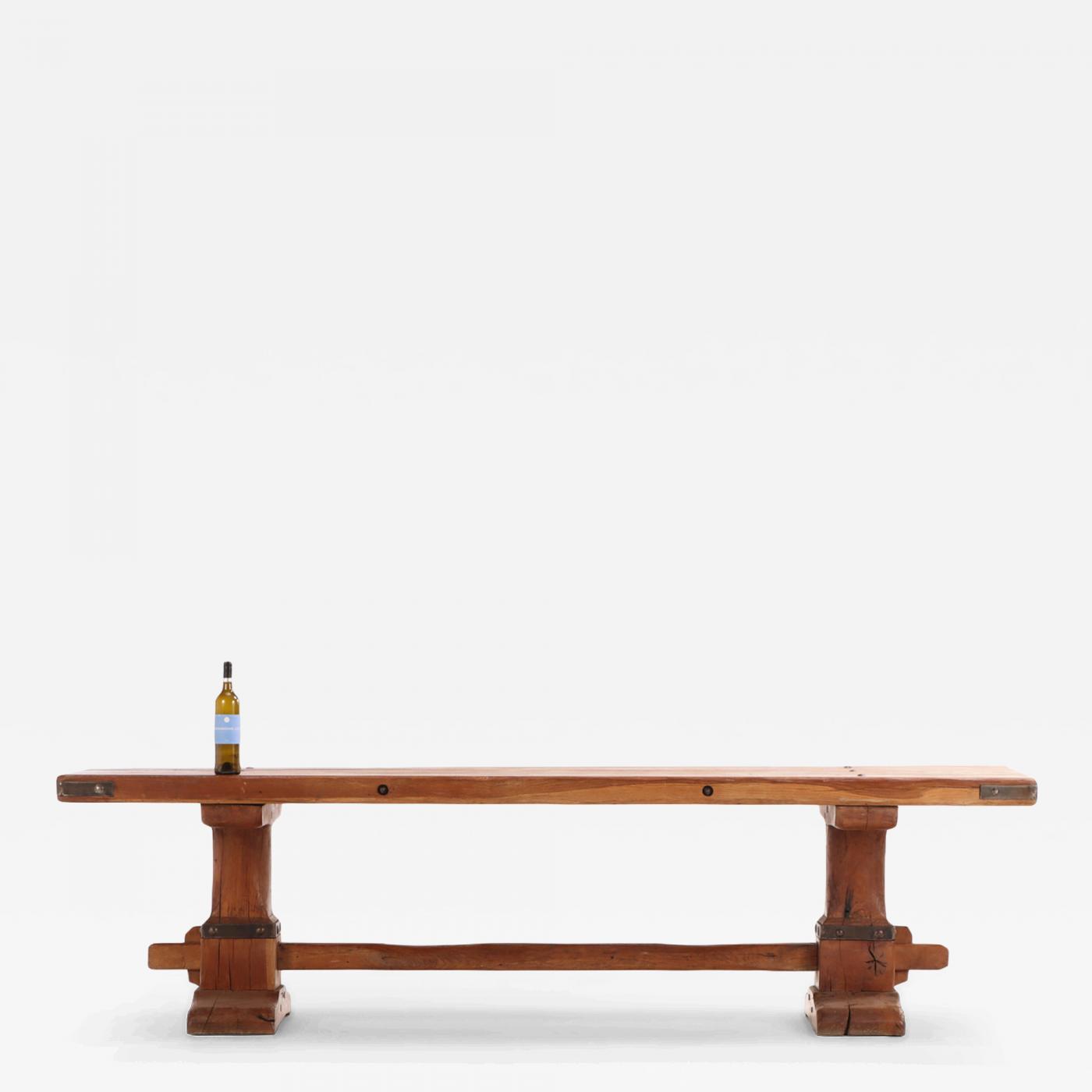 A French Oak Trestle Table with Iron Straps, C. 1920.