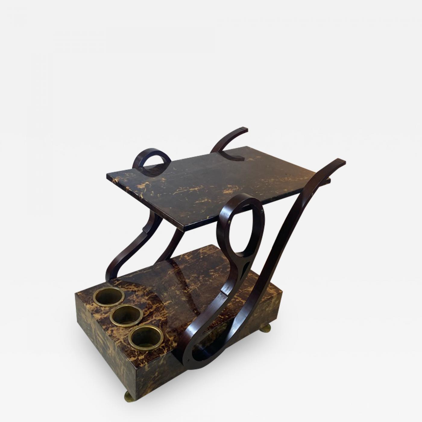 UNUSUAL TORTOISE GOATSKIN AND MAHOGANY BAR CART