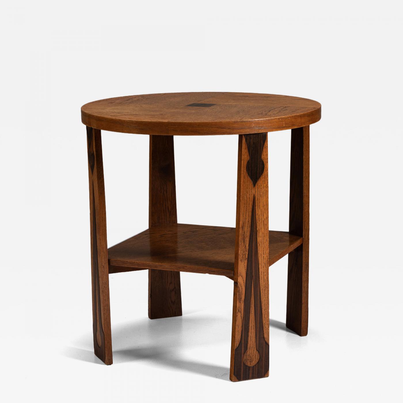 The Amsterdam School movement produced furniture that balanced bold forms with artisanal detail, and this oak side table is a fine example of that spirit.