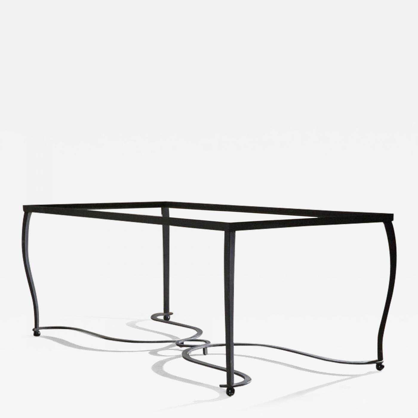 French Forties hand forged iron dining table base in the style of Arbus and/or Poillerat. Can take a glass or stone top, to size or larger. 71" long x 35" wide.