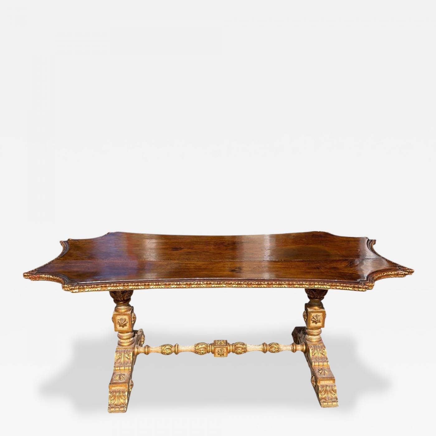 Antique Italian Walnut & Giltwood Dining or Center Table