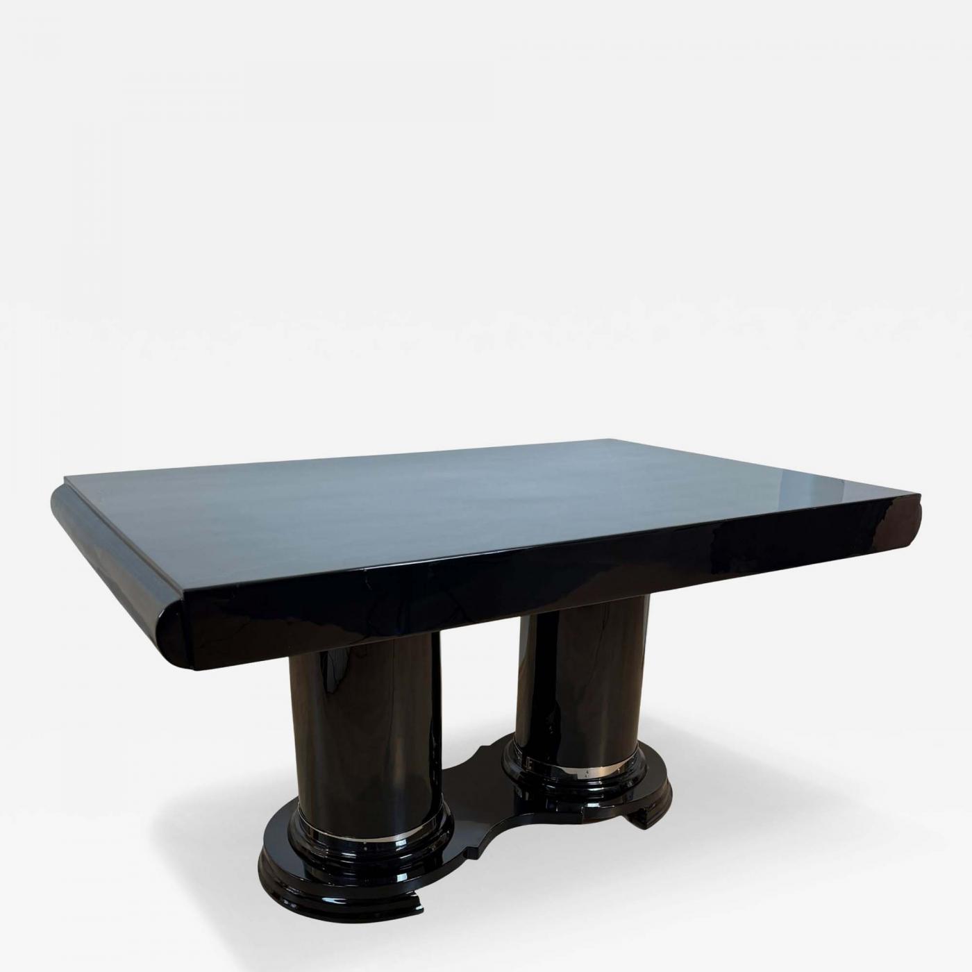 Classic, elegant Art Deco dining table with black piano lacquer finish, from France, circa 1930.