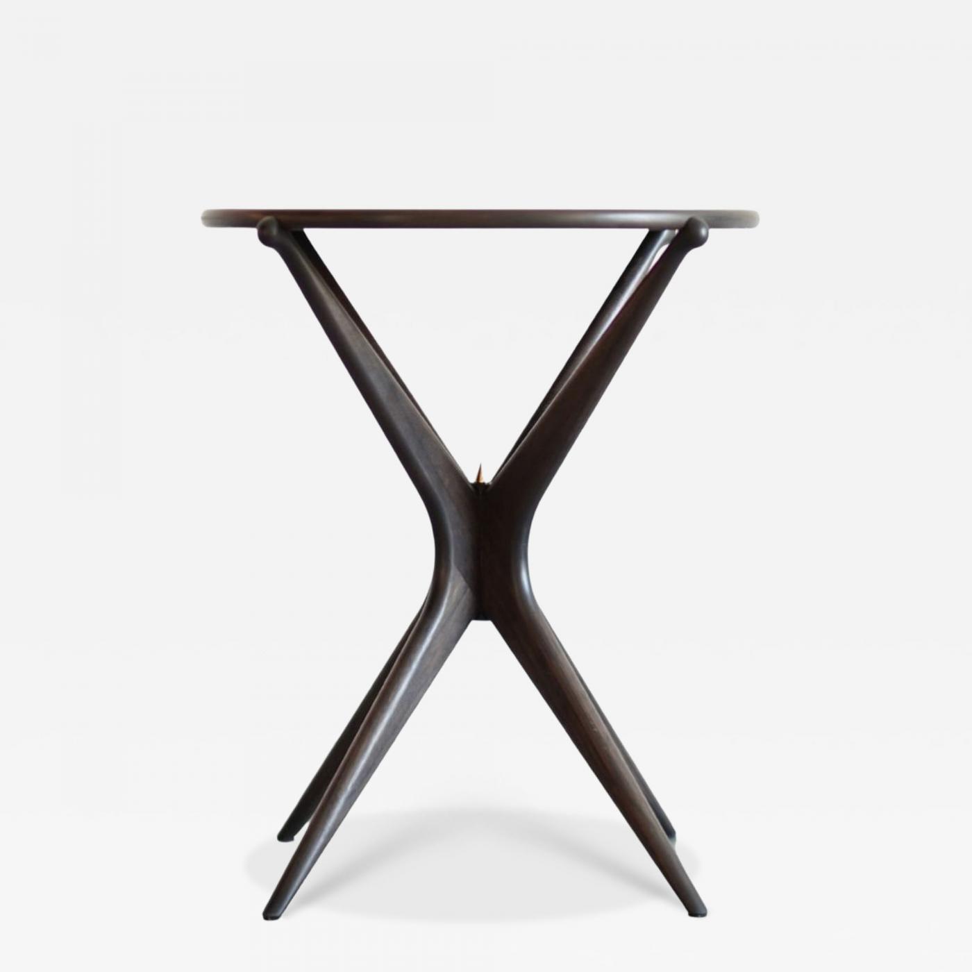 The Gazelle End Table Grande by Carlos Solano brings sculptural elegance and refined mid-century modern design into any space. Handcrafted in Connecticut, this luxury end table is built from solid walnut and features gracefully tapered, hand-sculpted legs that embody both strength and lightness.
