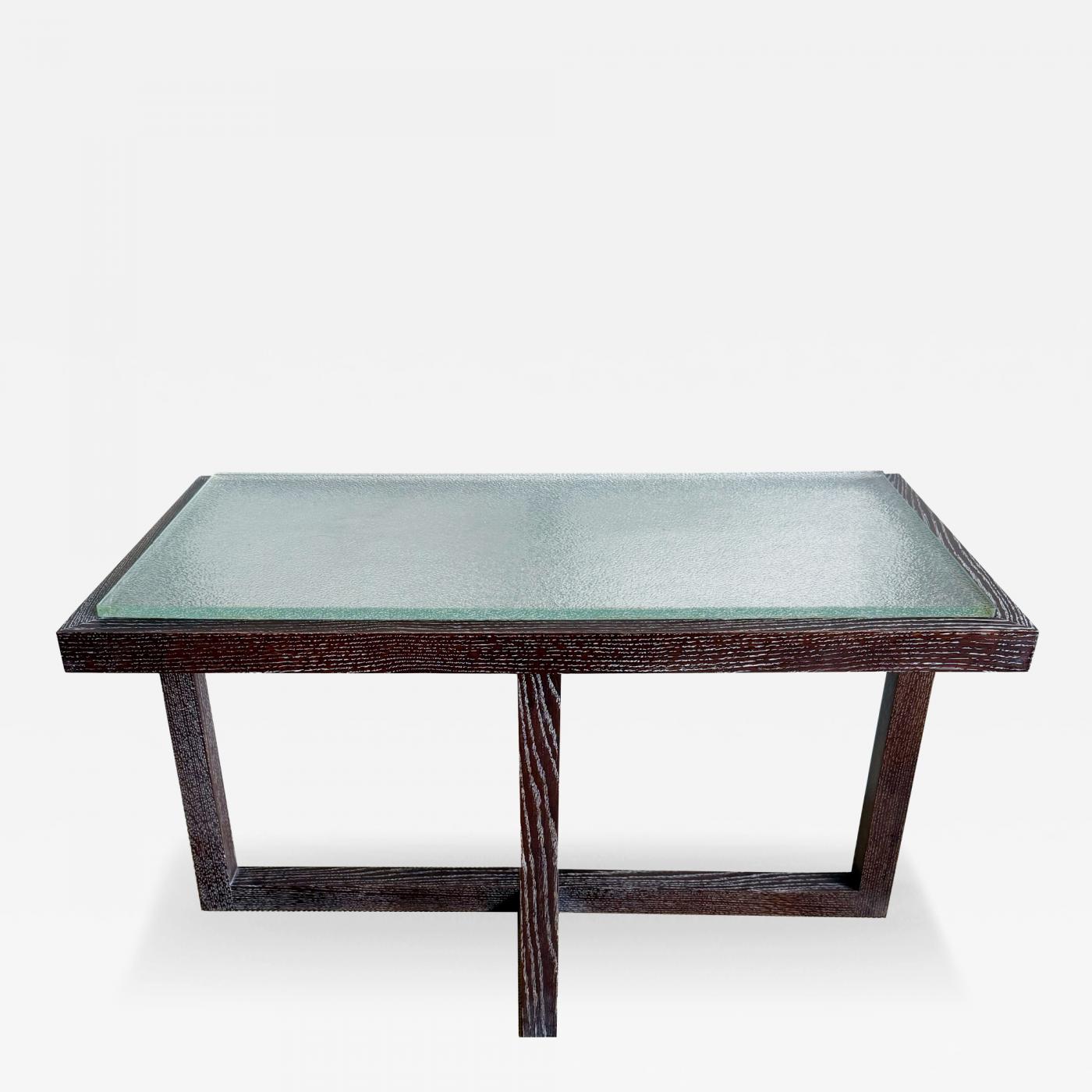 CERUSED OAK TABLE WITH SAINT GOBAIN GLASS