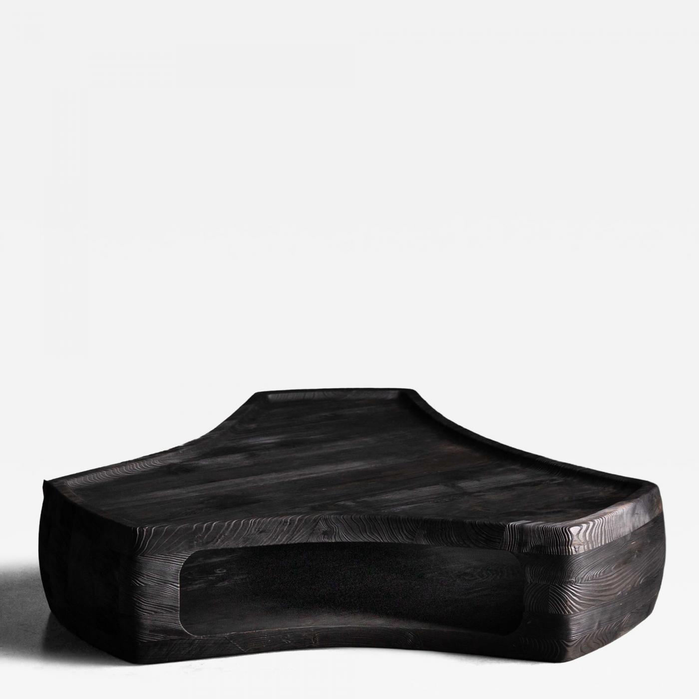The Silencio coffee table by Christian Liaigre reflects a contemporary interpretation of modernist principles, where proportion, balance, and material define the object. Liaigre, one of the leading figures in late 20th century French design, is known for his understated approach to luxury, developing interiors and furniture that emphasize calm, harmony, and material integrity. Crafted from solid wood and finished in a deep, dark tone, the piece takes the form of a low, sculptural volume with softened edges and a hollowed base. The composition is deliberate and controlled, allowing the structure to convey both weight and visual clarity.