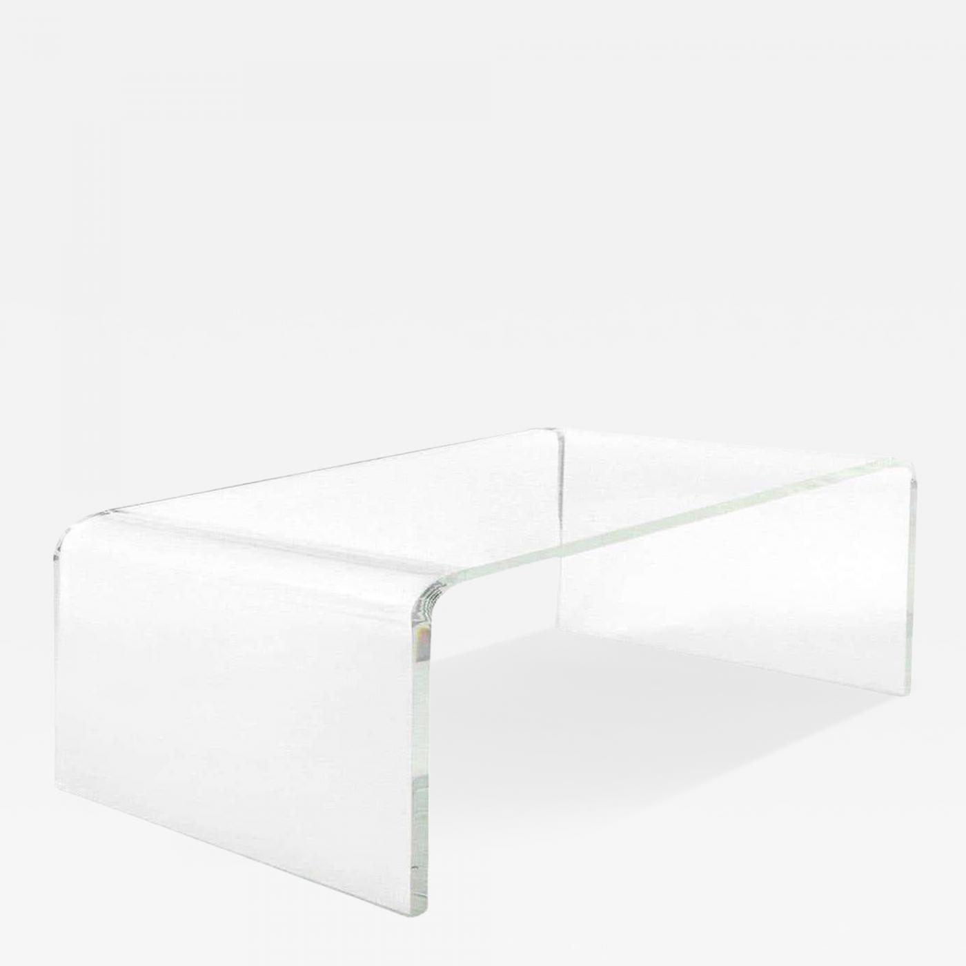 Offered for sale is a custom Lucite waterfall coffee table created by Iconic Design Gallery to the specifications above.