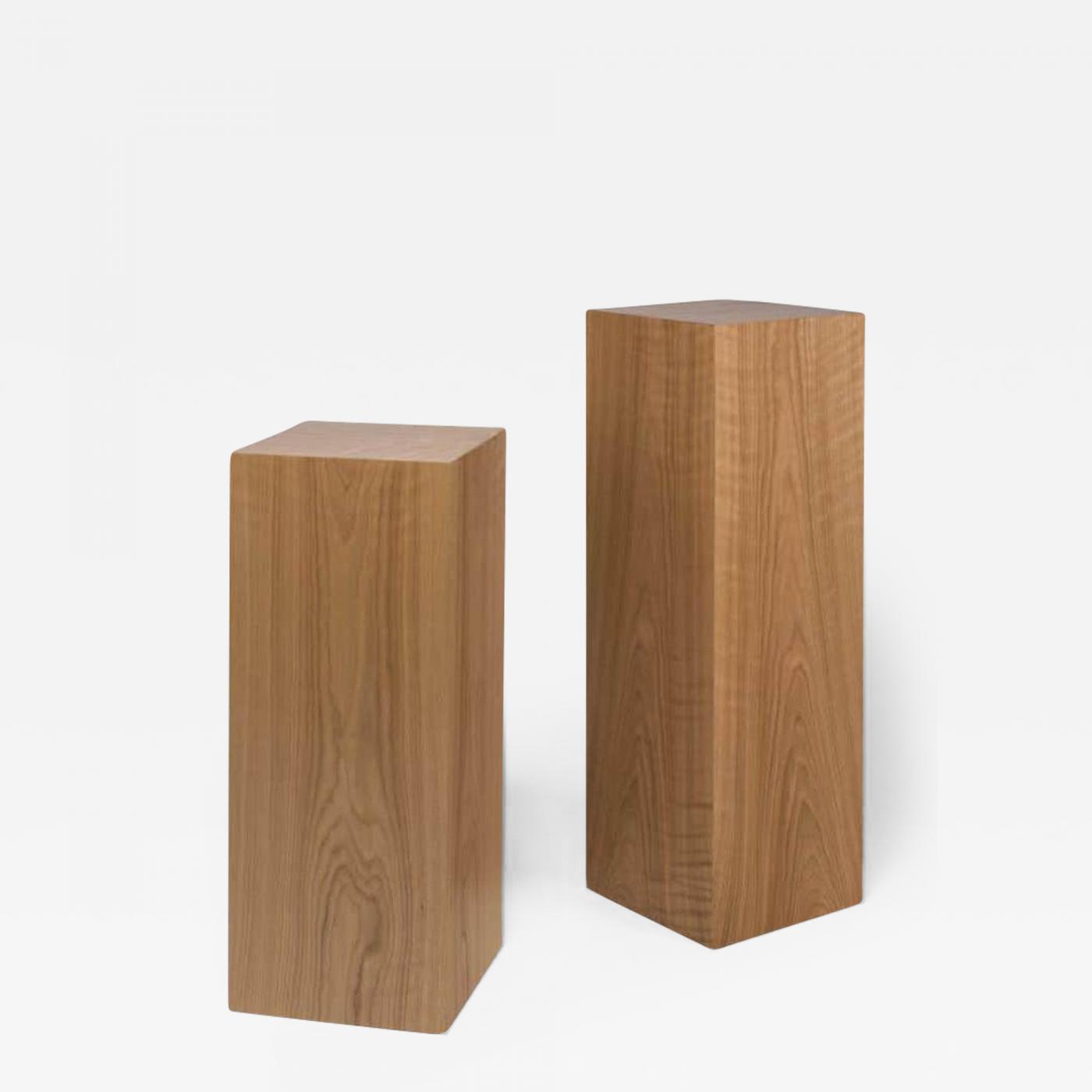 Custom pedestals (originally commissioned as part of larger pictured set) which can be reproduced in a wide variety of woods and sizes. Priced depending on number ordered, size and wood choice. Please call or email to explore choices and more specific prices. -
