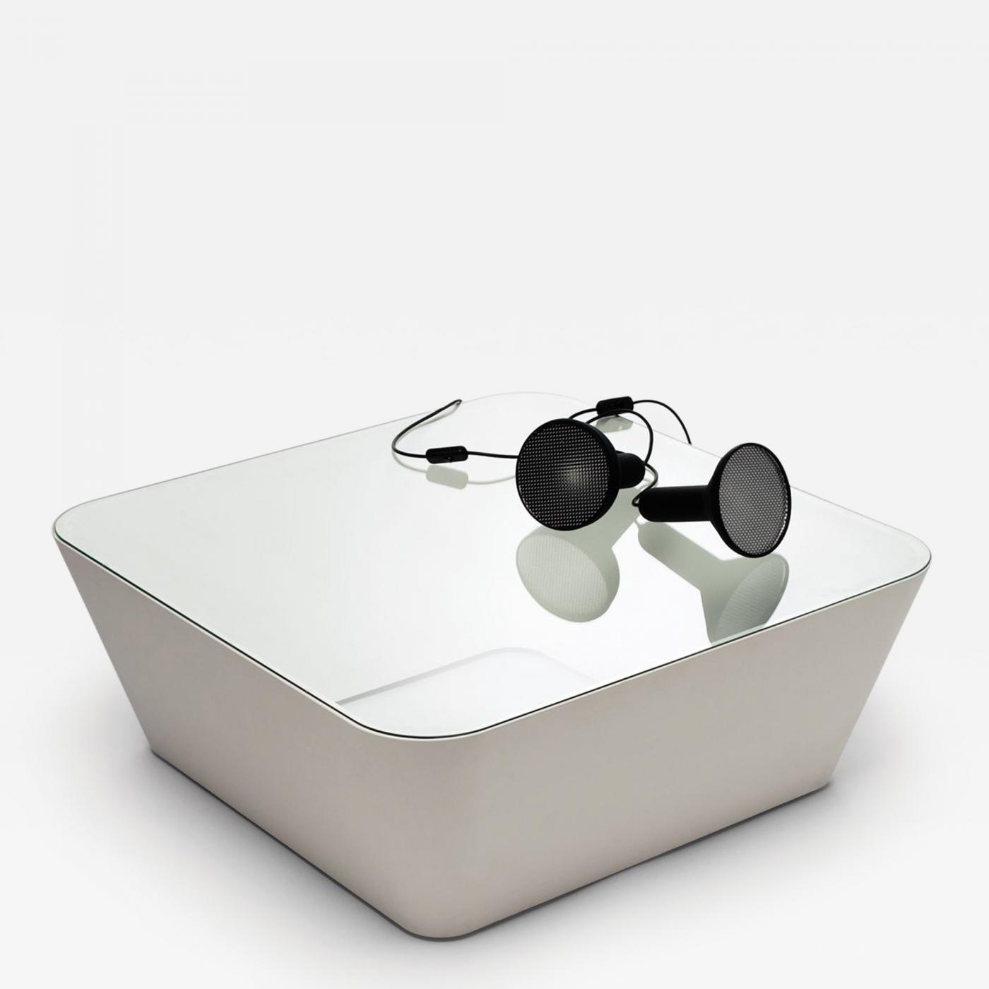 Constructed from an apparently seamless ribbon, the Zero-In table's shadow gap (hidden feet) and smooth finish make it a favourite with architects and their tech-friendly, modern interiors. The Zero-In utilises a dual wall construction that makes it possible for the slopes to converge at an unexpected angle. A softened square with rounded angles, the toughened glass top is strong, secure and has a high load capacity (weight is evenly distributed through the fully supported perimeter). Whether as a display surface for treasured books or a frame for interesting items, from whichever angle you look at it, this is a design that can be appreciated in its pure form.