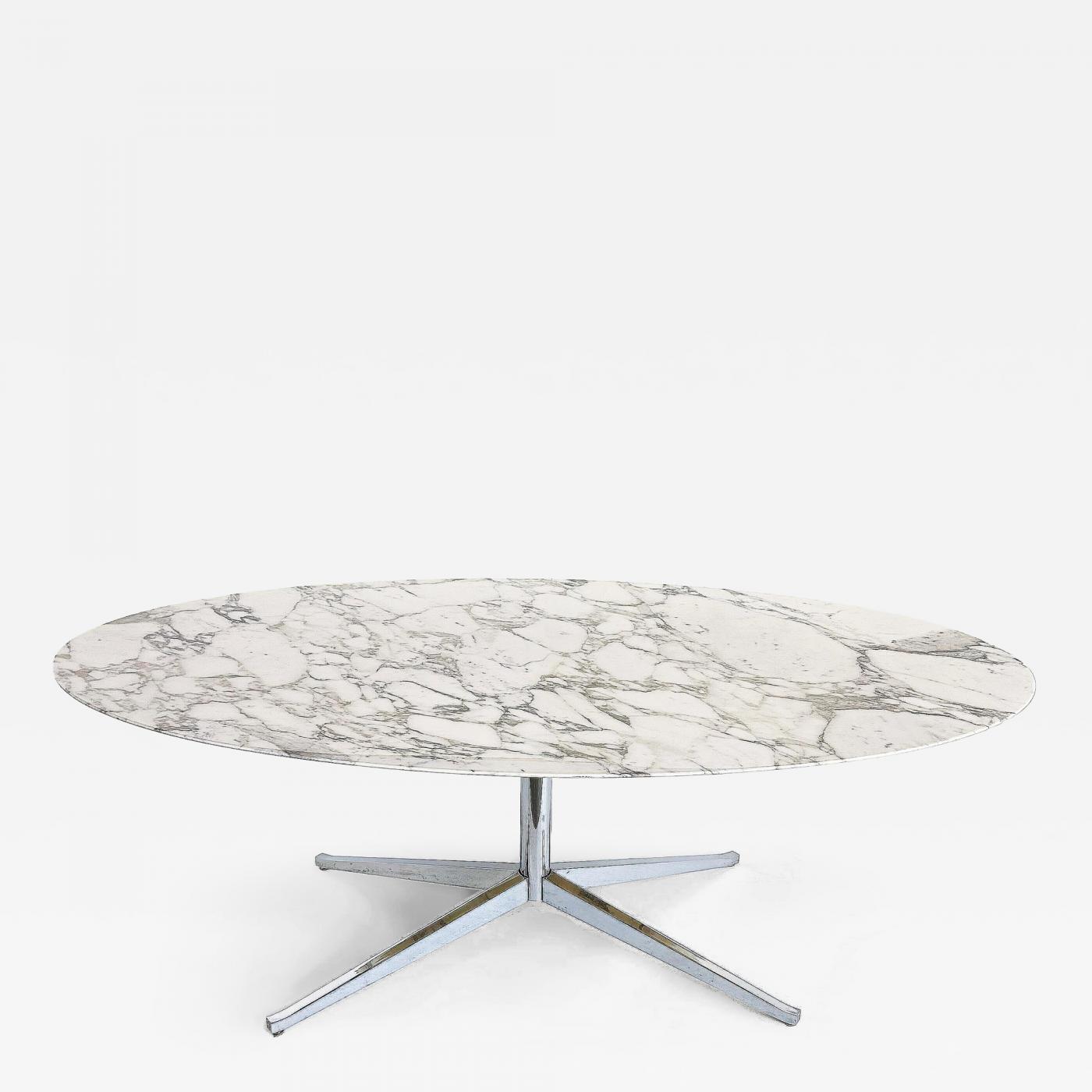 Florence Knoll Oval Carrara Marble Dining Table, Signed Stainless Steel Base