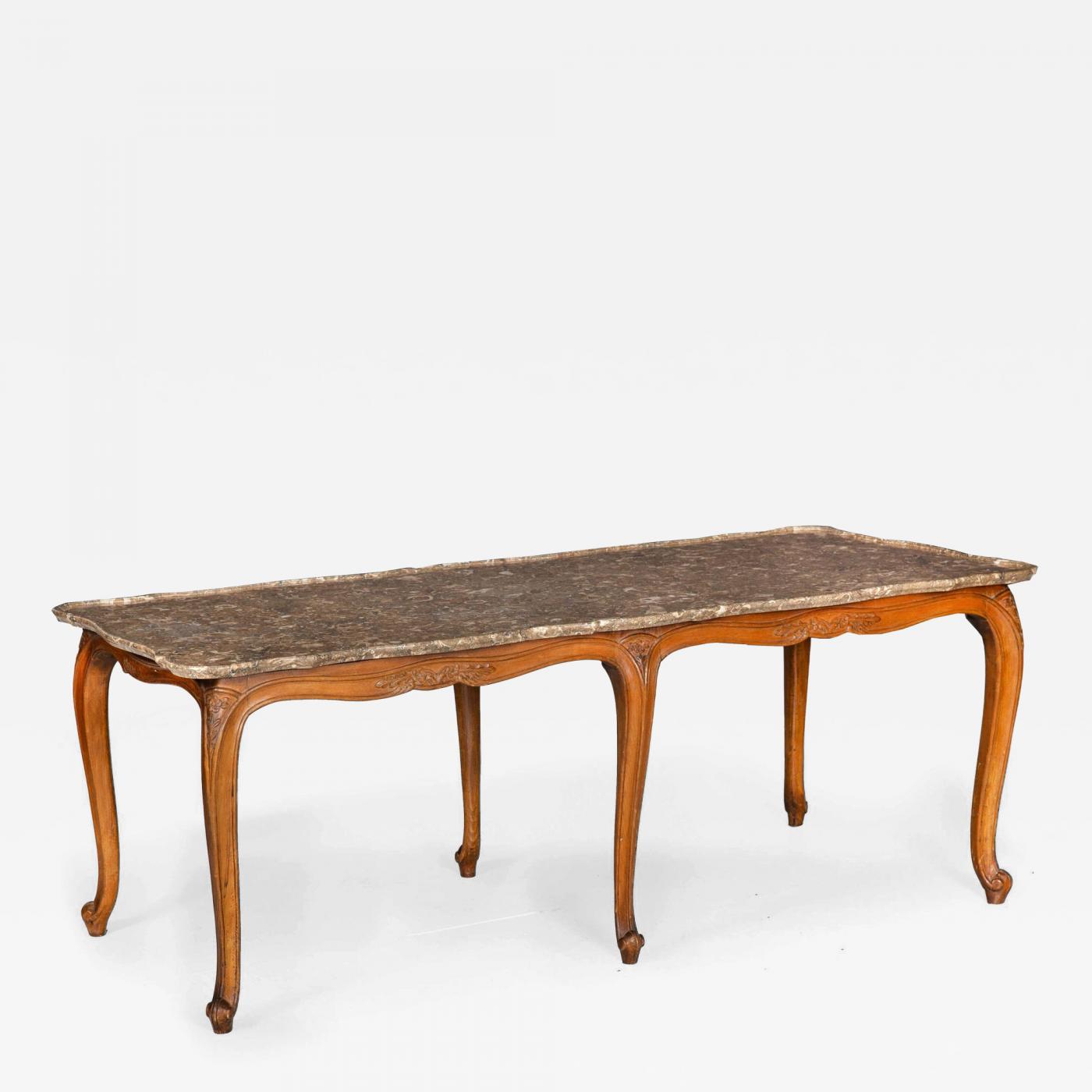 CARVED WALNUT MARBLE-TOP LOW COFFEE TABLE IN THE LOUIS XV TASTE