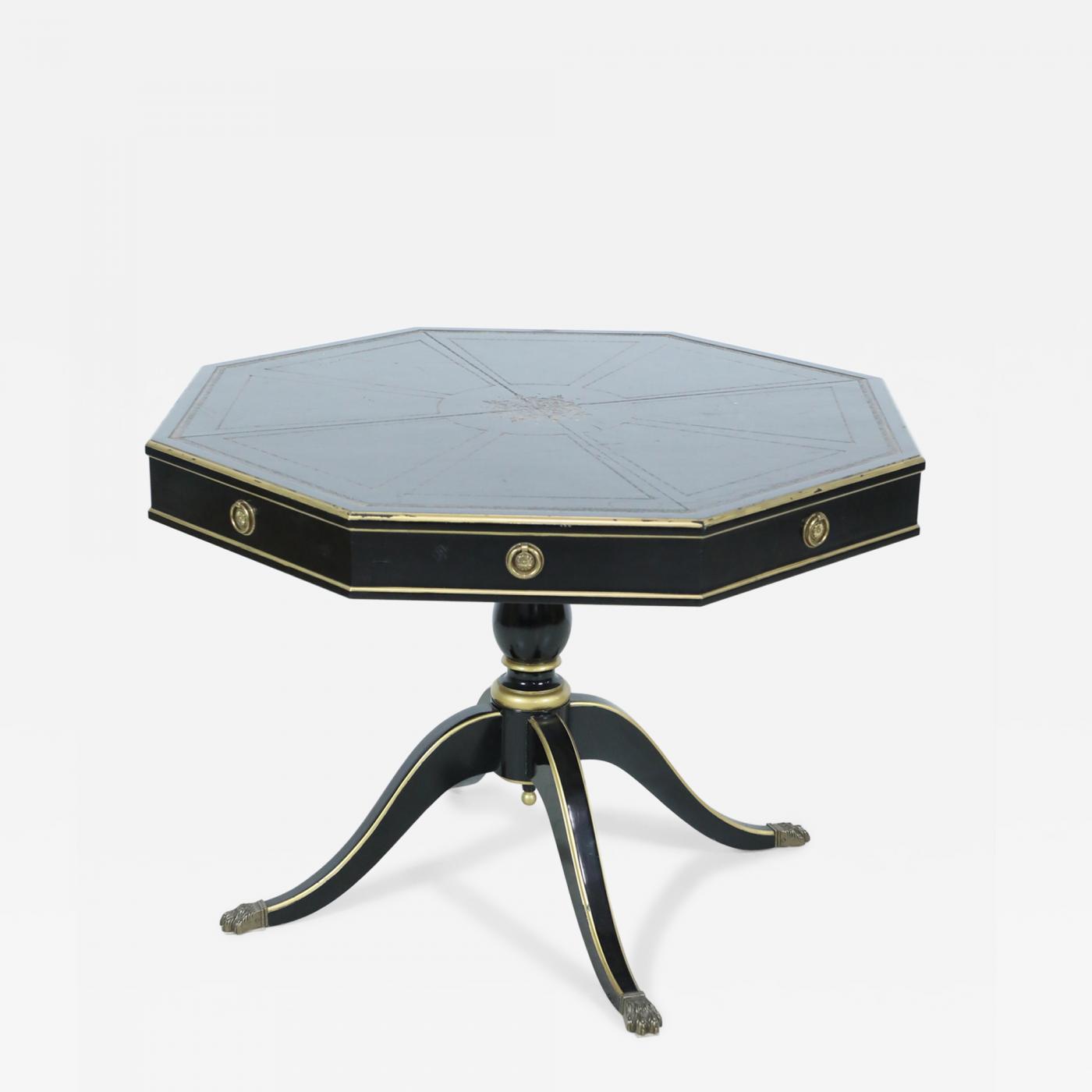 French Regence-Style Hexagonal Black and Gilt Leather Top Pedestal Center Table