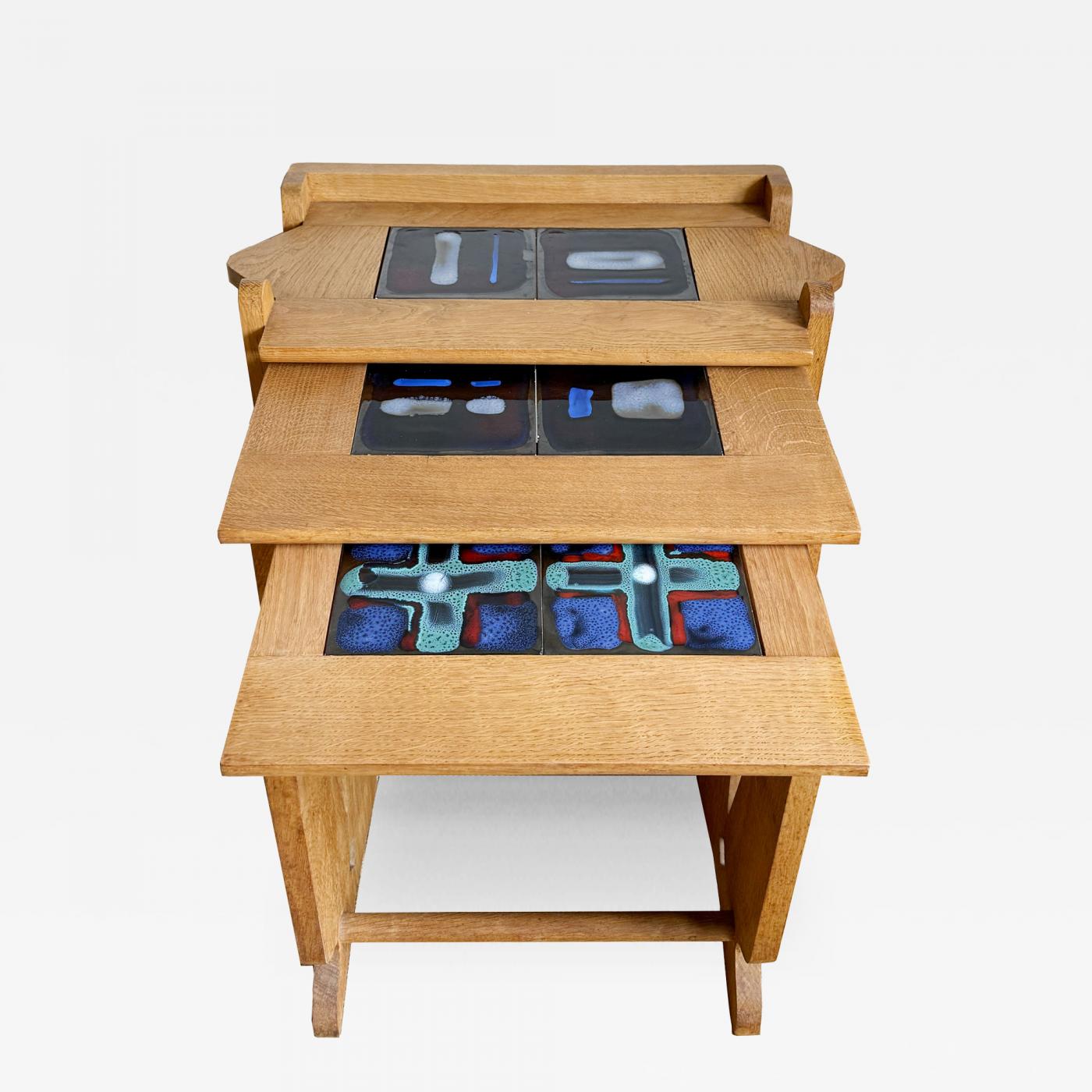 - SET OF THREE NESTING TABLES WITH ALDO TURA LACQUERED PARCHMENT TOPS