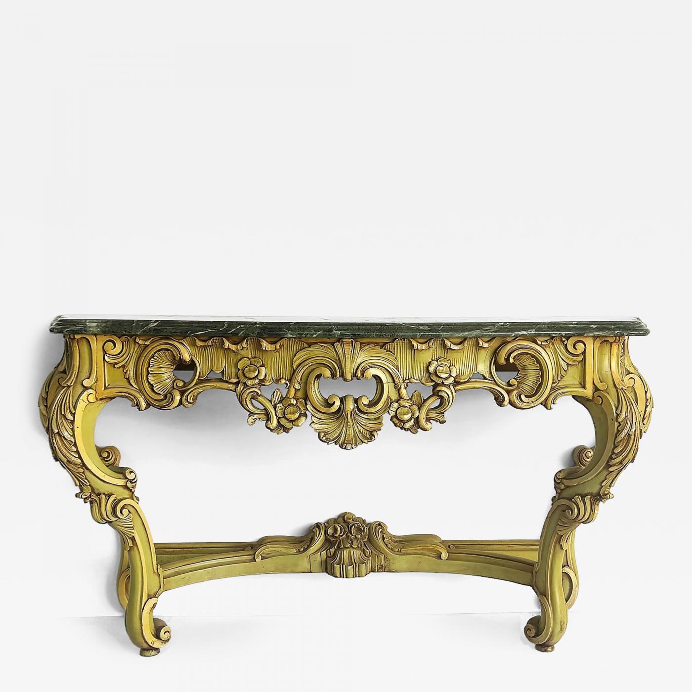 Italian Marble Top Painted Carved Console Table in Baroque Rococo Style