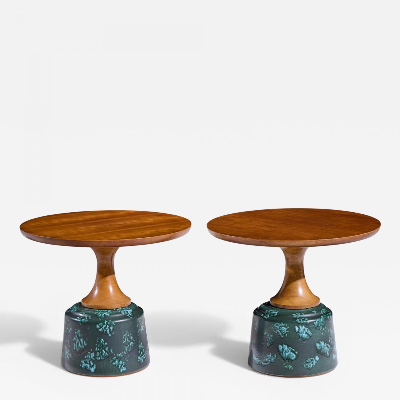 John Van Koert for Drexel Green Ceramic and Walnut Side End Tables - Pair