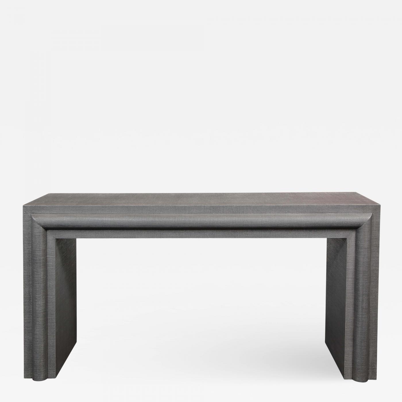 In the Style of: Karl Springer Origin: United States Period: 1950-1979 Materials: Linen, lacquer, wood, handcrafted. Condition: Good. Condition: Excellent - this table has been completely restored by Lobel Modern. Creation Date: 1970s Styles / Movements: Modern, Studio Craft Dealer Reference #: consoletable138 Incollect Reference #: 528657 -